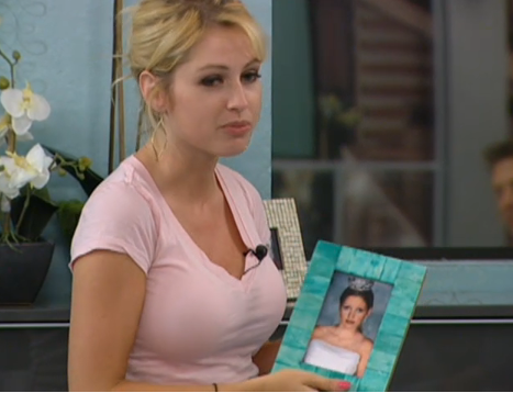 He opens the door, she comes out mad as she told him not to do that.