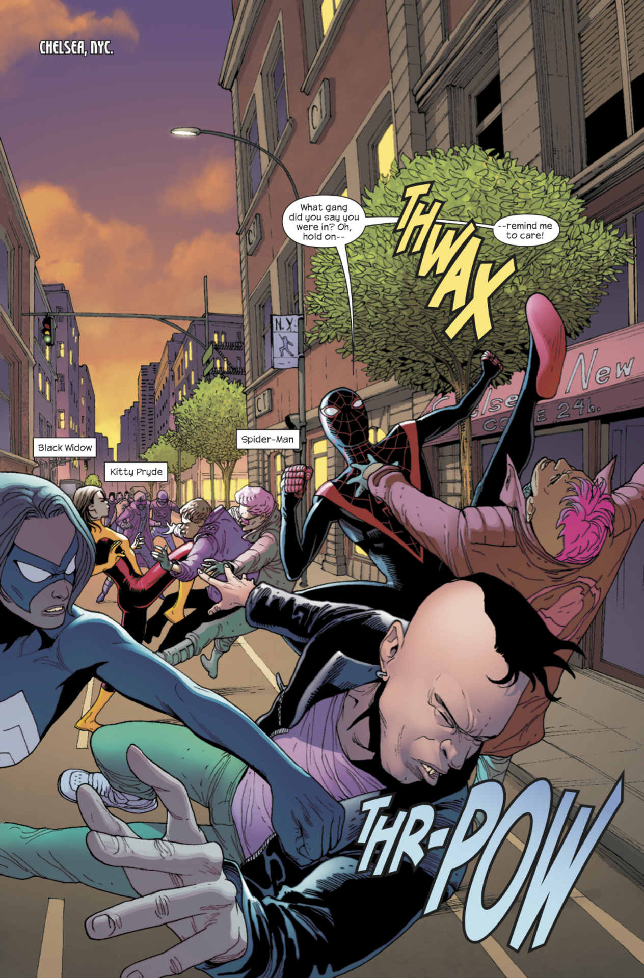 Spider-Man takes off like we saw in Original Sin 2. He heads to Ezekiel’s old building.