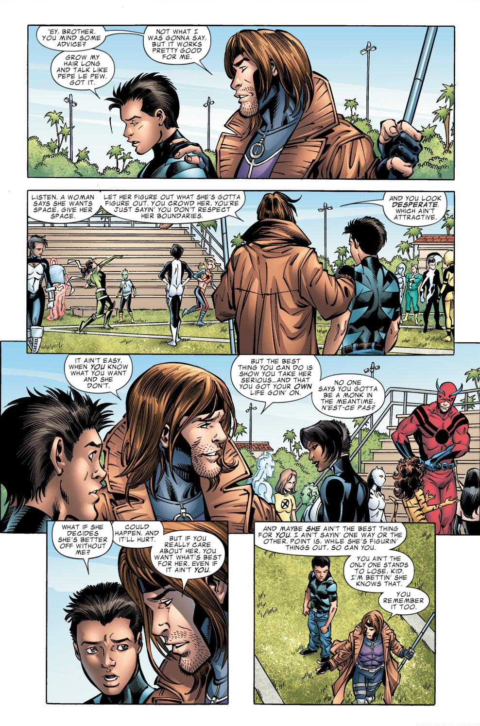 Nice staging with Finesse walking by Rogue so that Gambit is giving himself that same advice.