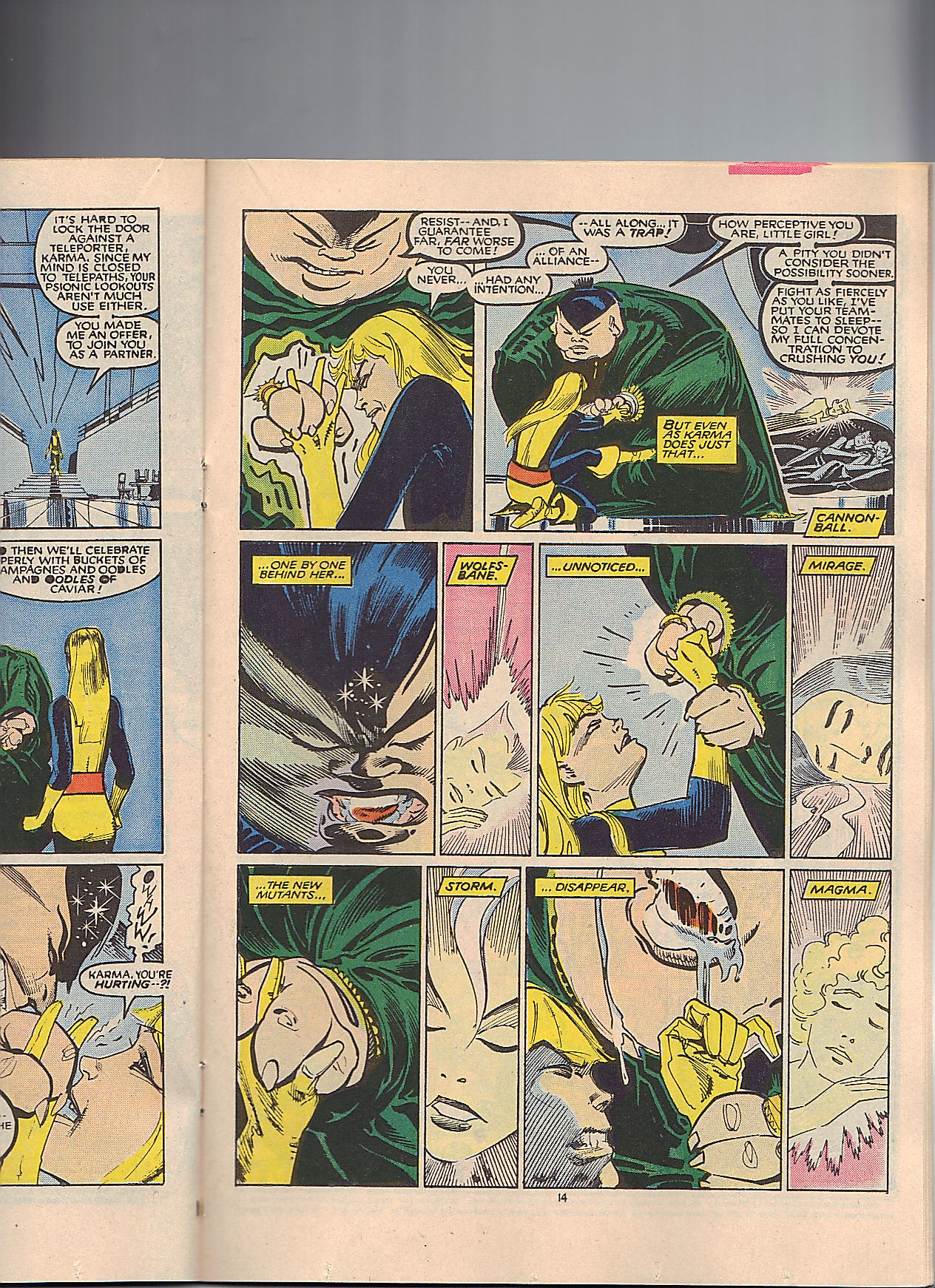 Magik opens a scrying pool, to spy on Karma. So they must not know that she is being controlled by the Shadow King, yet. The rest of the New Mutants and Storm, are Karma’s prisoners and puppets.