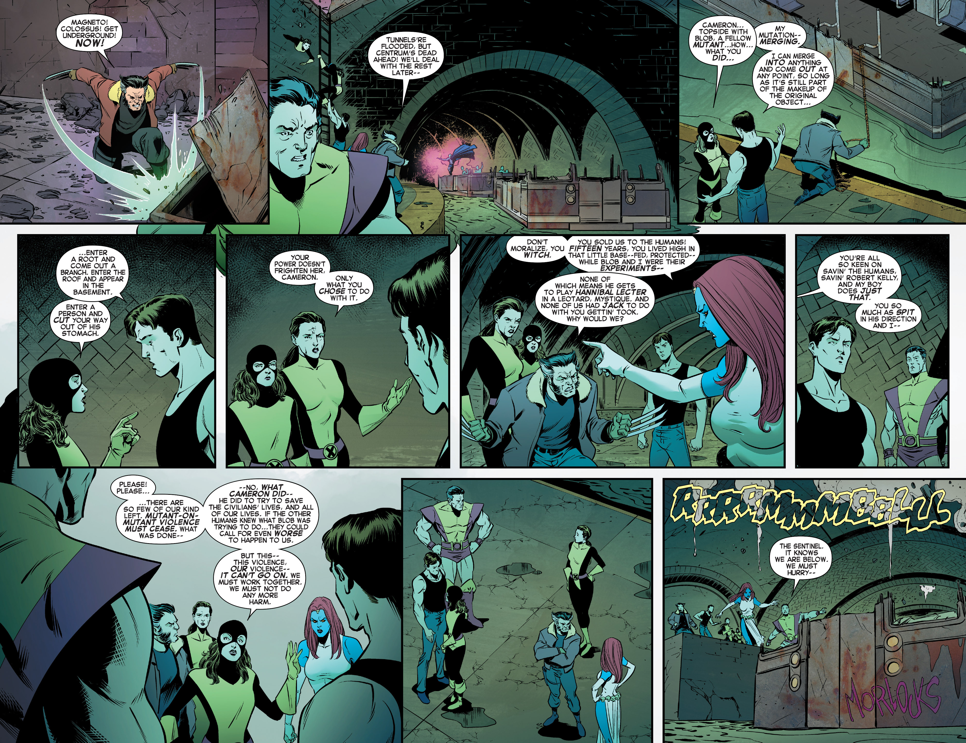 Shadowcat turns to the camera, as people are clearly allowed to do that now and says “hey kids, if you’re watching this at home. Watching this televised hate crime. You’re the reason your life sucks, not us. Sit in the dark and think about that.” Which is pure awesomeness! With that, the broadcast is over.