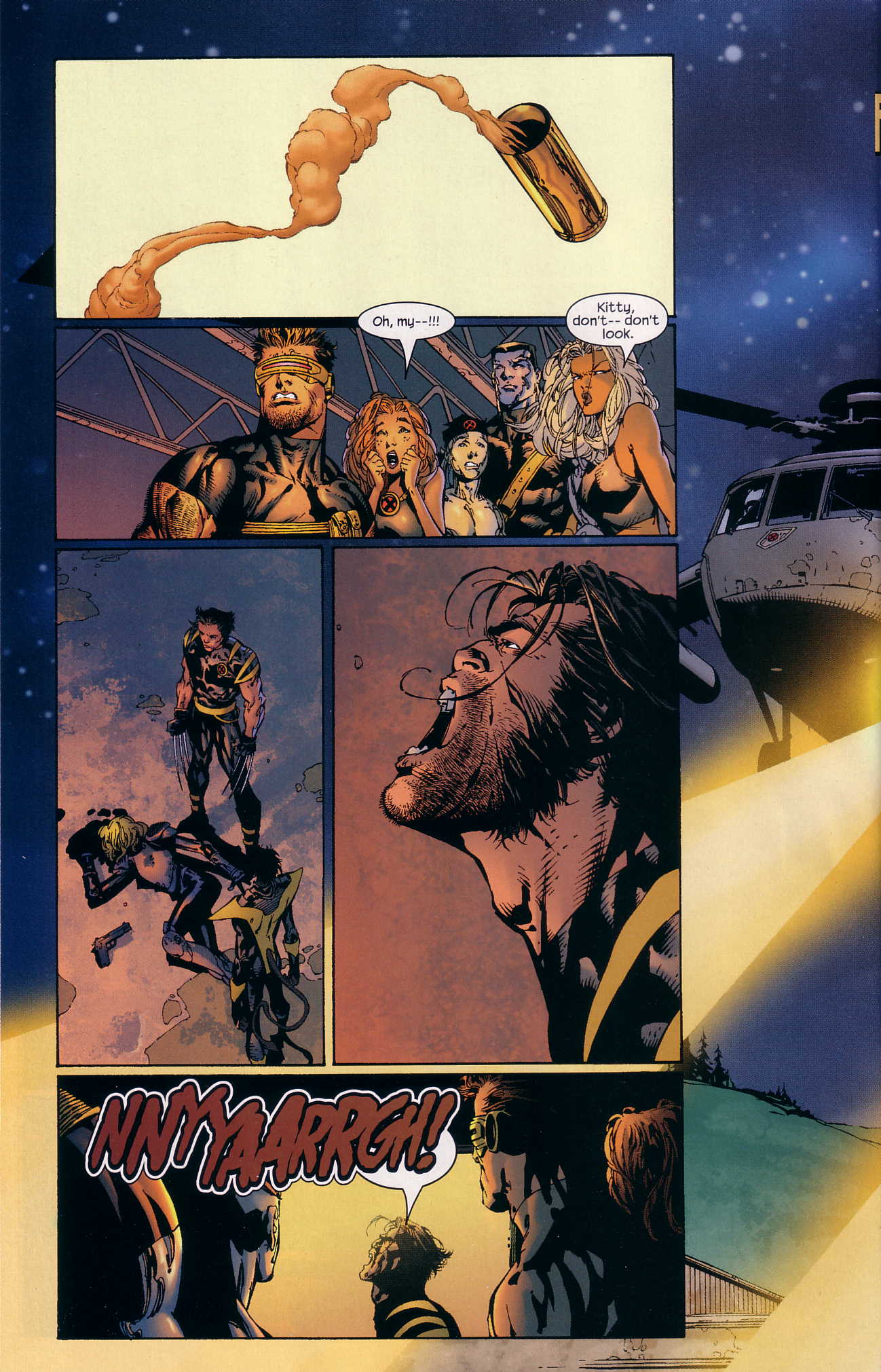 The X-Men come storming through the door. Kitty isn’t seen on this page, which is a shame!