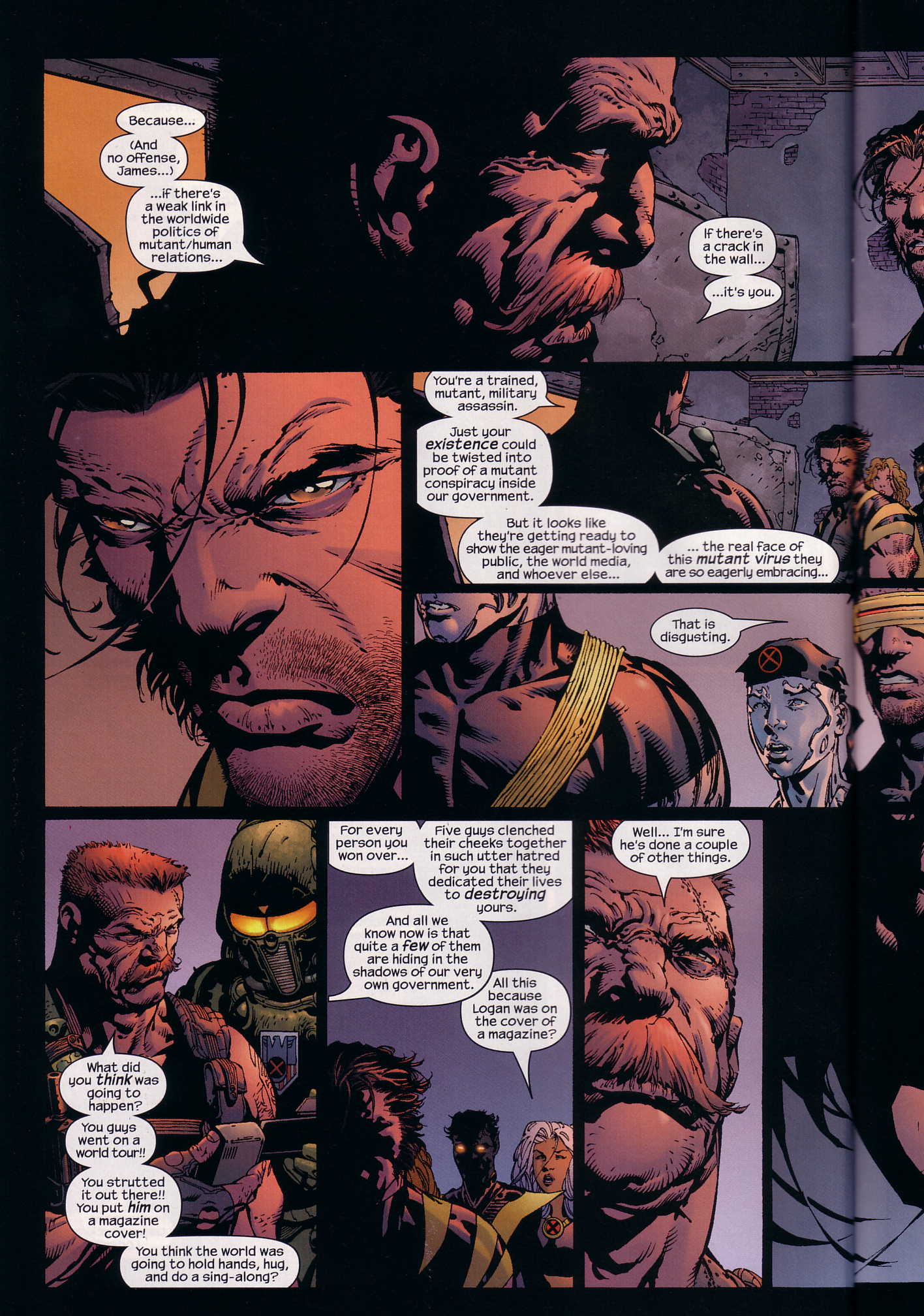 There is a great moment when he spells it out to her, that if you attack Wolverine, then it is an attack on the X-Men, which is an attack on Xavier, which means it is an attack on Nick Fury, which is an attack on the Ultimates, which is an attack on President, which is an attack on America. Which is treason.