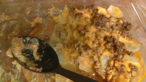 What I use I did, was find a way to add some color to the recipe, as it was a lot of white with the potatoes with spots of brown with the beef. Could have used some greens or reds to brighten it up. Which, again, is only a thought I’ve had now that I’m taking pictures of my dinners.