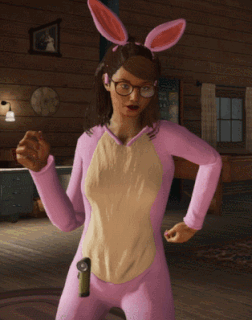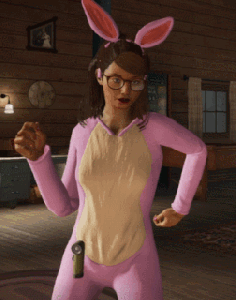 Deb’s costume is a bunny costume! That’s when she won my heart!
