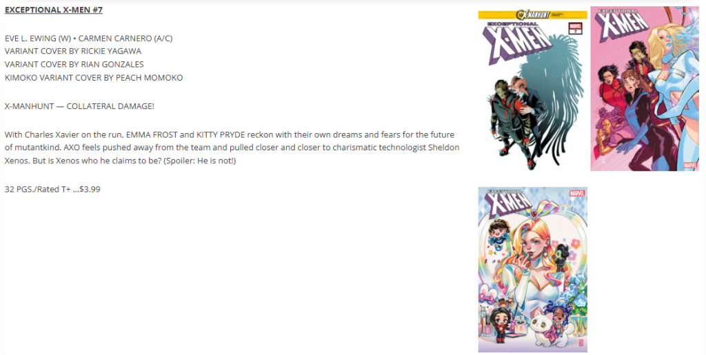 Actually it is 1 of 6 one shots, so hopefully the X-Men get their proper one-shot, but we’ll be checking for all of the Kitty Pryde, Lockheed, and Magik content