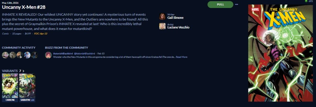 Maybe also Uncanny X-Men 28, pending on which New Mutants appear in it. Recognizing that by the time we know which ones, it’ll be too late to preorder.