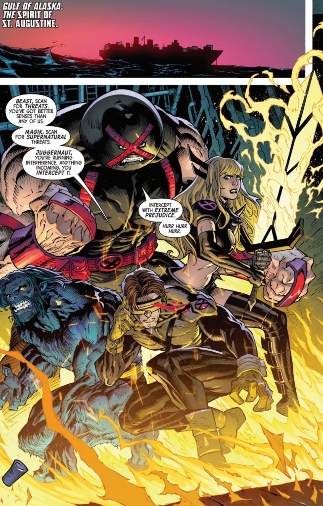 Glob Herman gets hate crimed, which I immediately was worried about when Scott and Kwannon was discussing Glob having a garden, and I thought the room they hinted was his shop that was wrecked, but it was the police station (though it should be a sherif’s office, if they’re sheriffs and deputies, but okay). Glob is shot, and we don’t have resurrection anymore. Maybe he was just shot in the shoulder? I have my doubts.