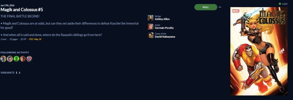 Does the lack of variant covers mean we’re not getting Moonstar and Magik & Colossus renewed for five additional issues? I’ll be getting the variant cover.