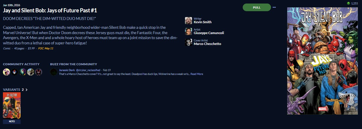 Lockheed is on the main cover of Jay and Silent Bob : Jays of Future Past 1, so that’s the cover I’m getting. Shame he isn’t on the Noto cover.