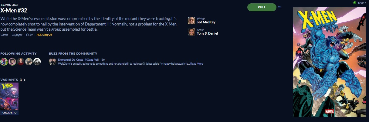 X-Men 97 : Season Two 1, this is supposed to be the official bridge miniseries between the two seasons, but we’ll see about that. If Kitty Pryde or Magik is in this, I’ll get more excited.