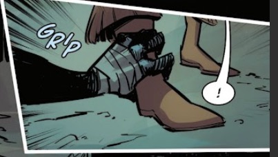 As they approach the alter, he zombie goon grips Dani’s ankle, and we get a very fun insert panel with a “grip” sound effect. I love this so much.