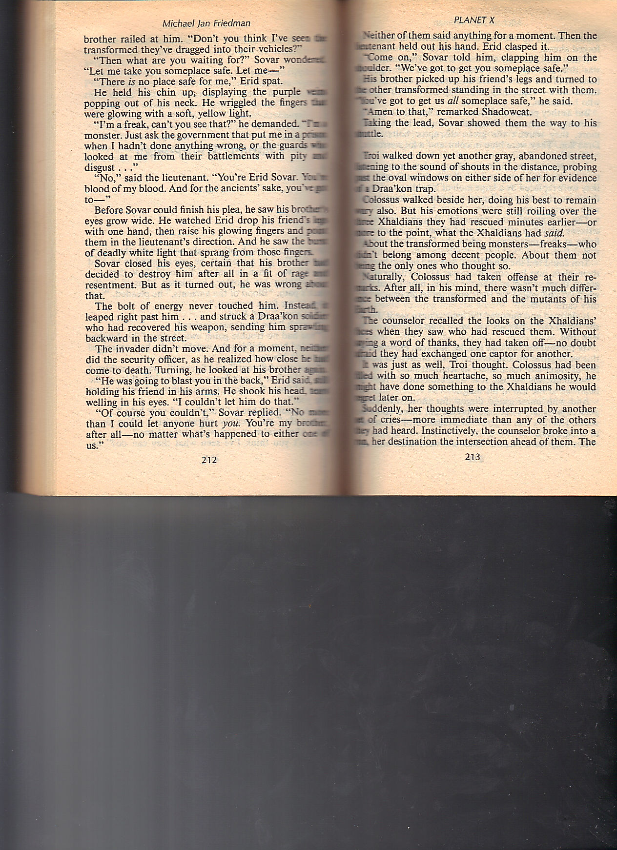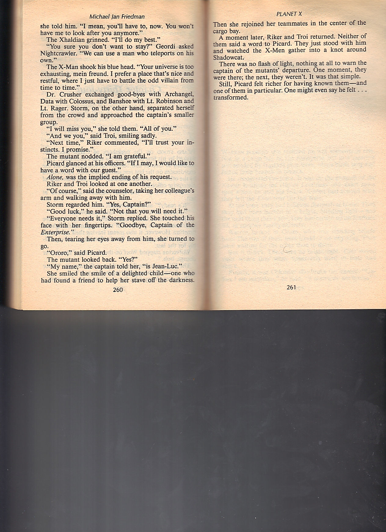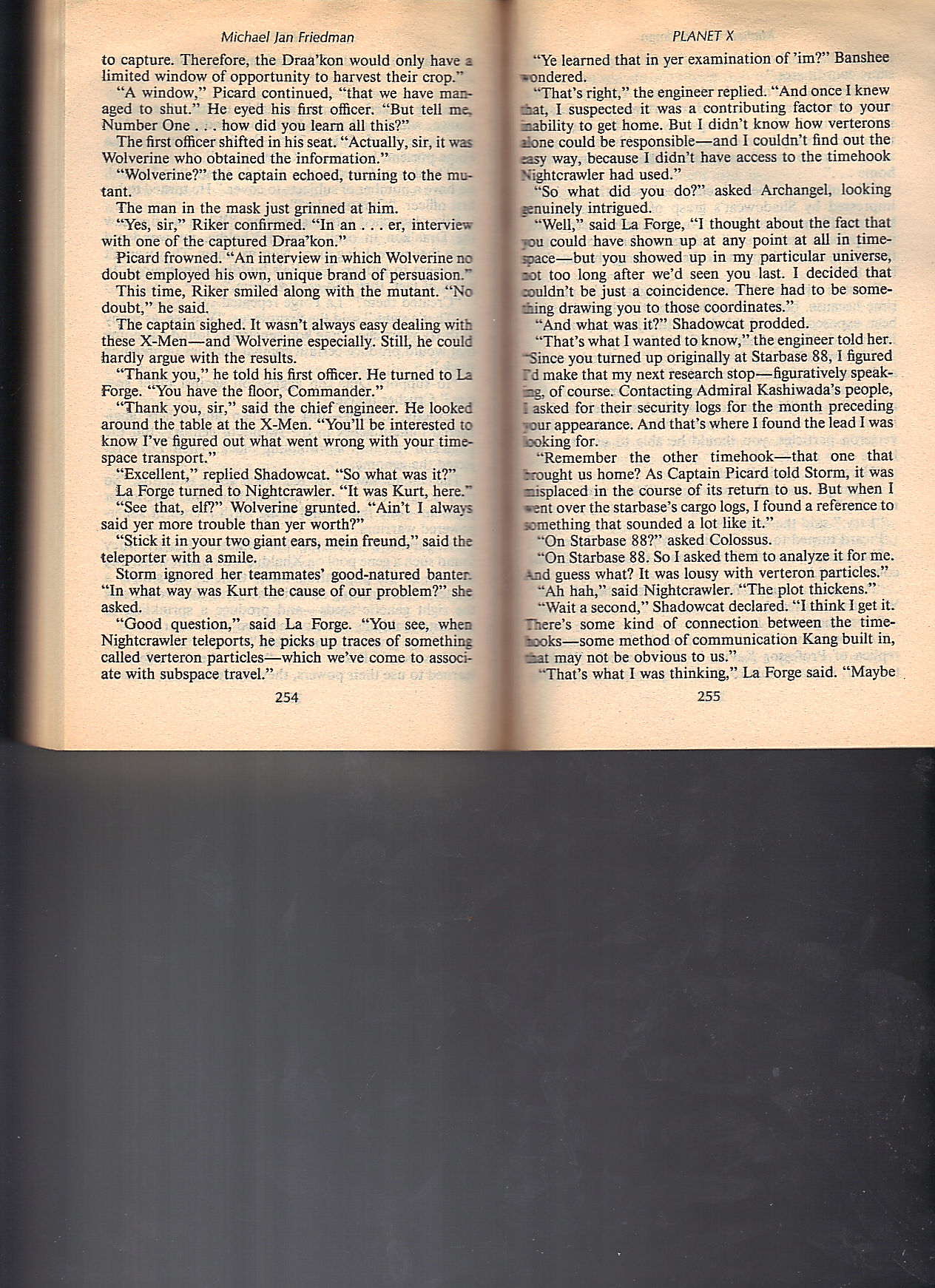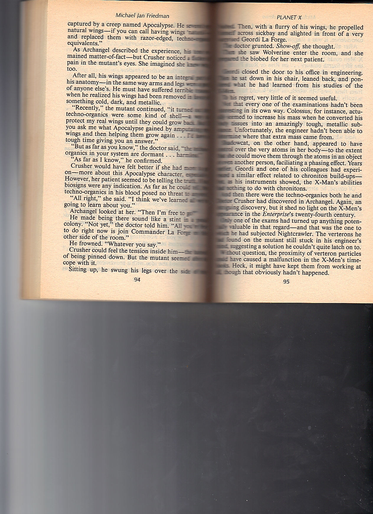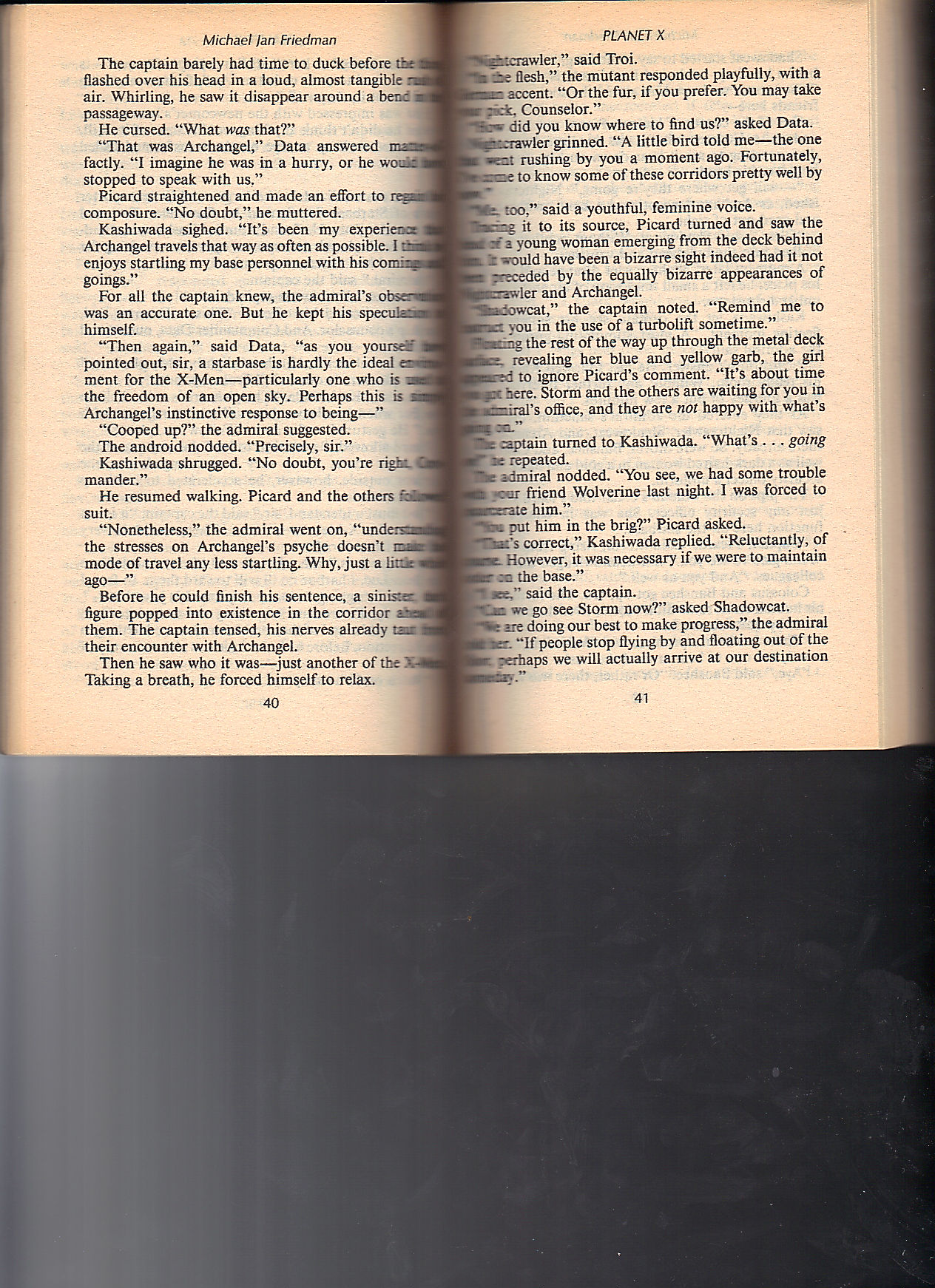 This is a pretty fun novel. It reads very much like a Star Trek novel, that happens to have the X-Men. The greatest of the X-Men, Shadowcat, is barely used. She appears in 26 of the 264 pages. In my younger days, I apparently kept track of them on an index card. Below, I’ve scanned all 26 pages so you can not only sample of the book but also enjoy the Shadowcat experience.