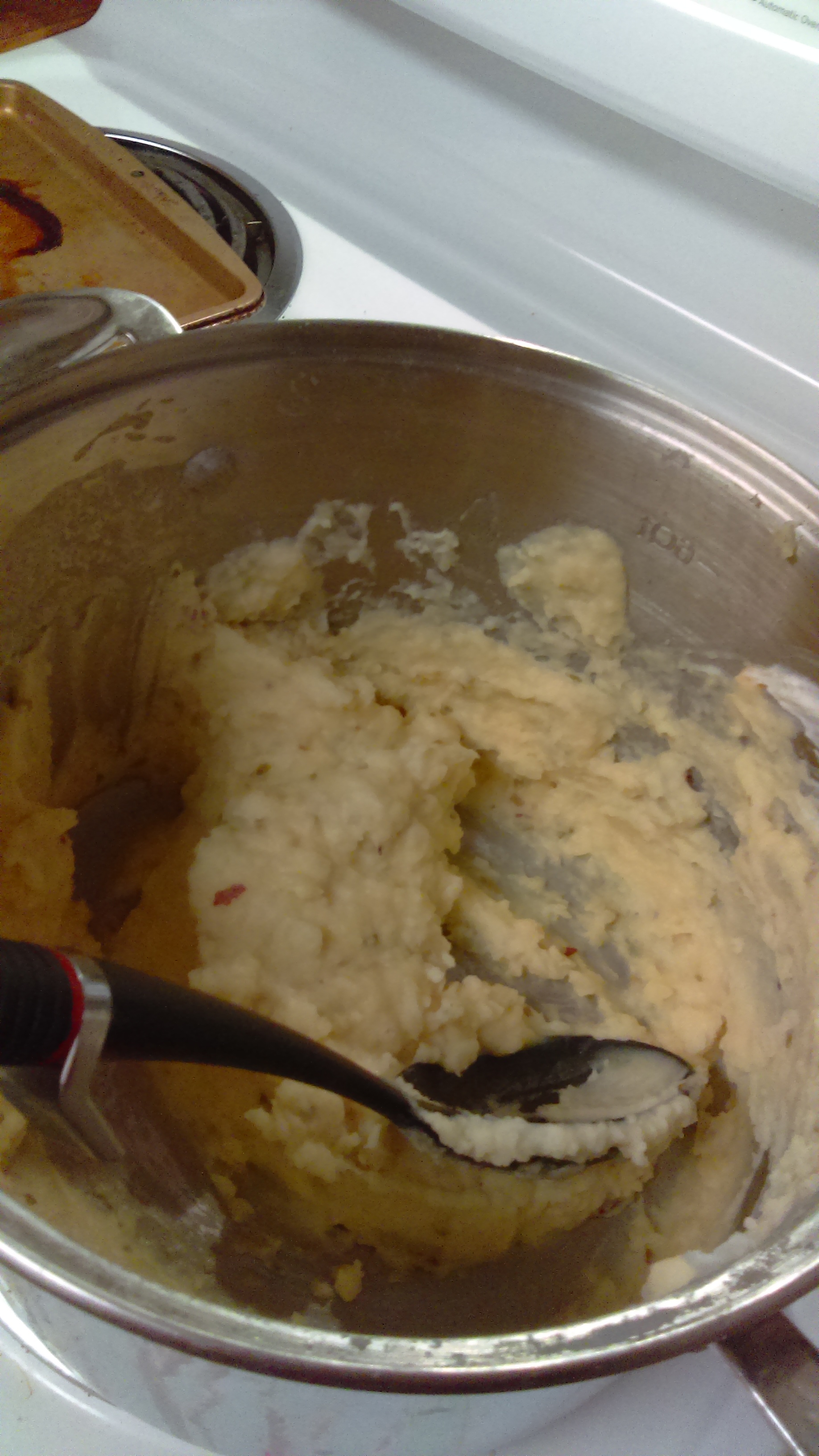 Instead of quartering the red potatoes, I cut them into eighths. Some probably should have been cut even more.
