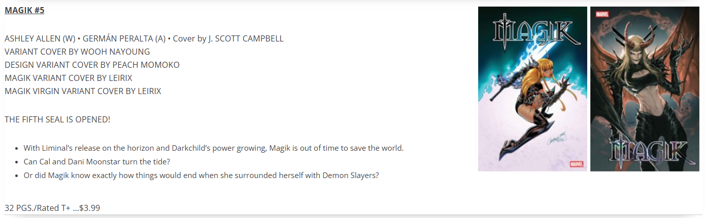 5 comics, so maybe I can get a few Magik variants for both her mini, and X-Men. That’ll be nice.