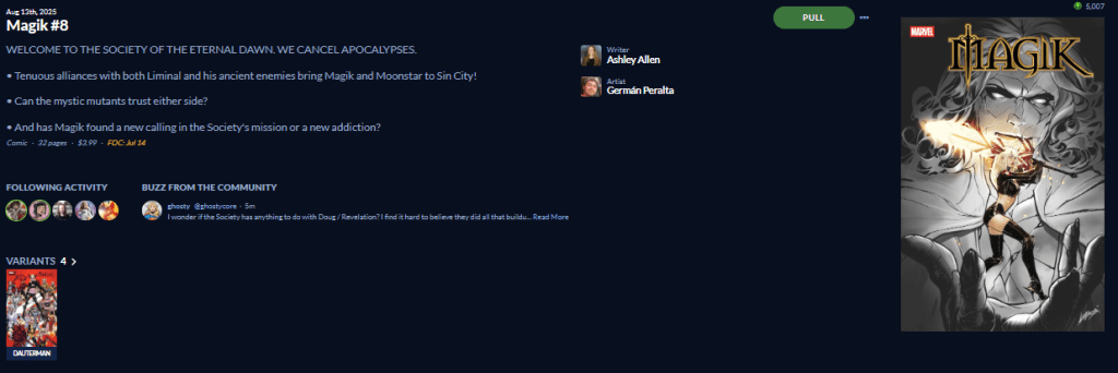 I wonder who the Dark X-Men consist of? Nice to know we have a Magik variant cover, I’ll see how much that costs.