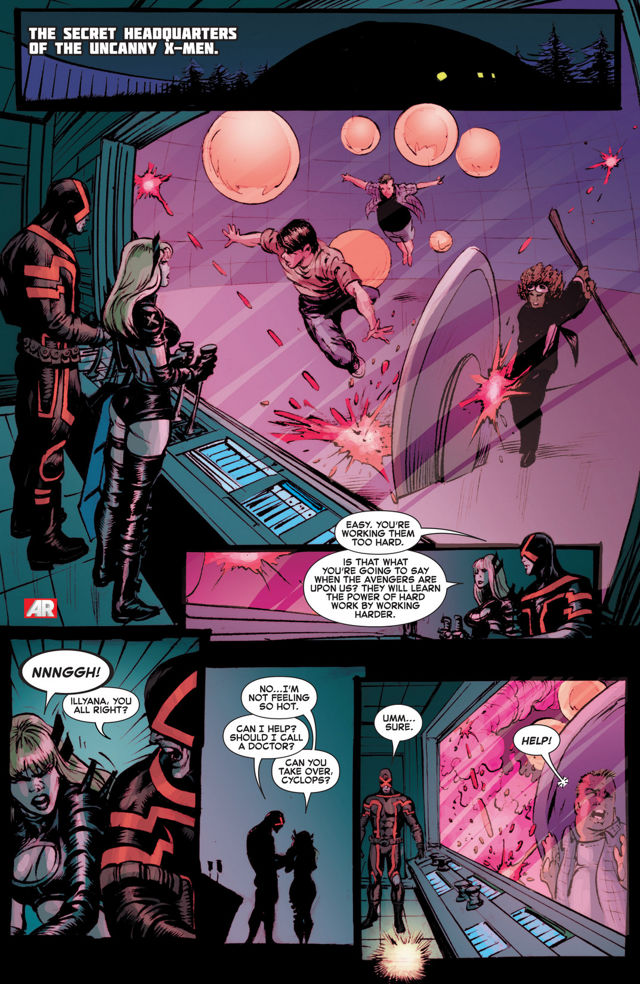 Turns out, like the Danger Room, it has become alive. Unlike Danger, it feels bad for all the death. Also unlike Danger, it is only a program, it doesn’t have a robot body.