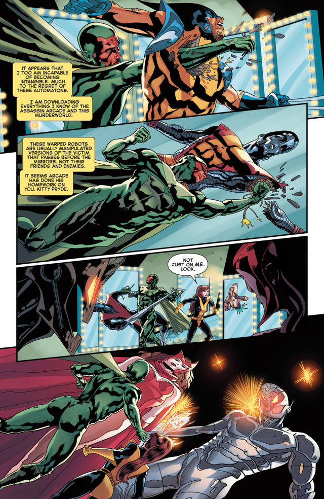 Vision’s plan is to switch familiar opponents. Kitty likes that idea, but first she wants to take out the Emma Frost robot.