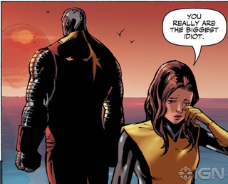Cyclops finally gets around to talking to Emma. Emma is insulted that he just took for granted that she was going to join him. She loves teaching, she would be a perfect fit over at the new school. Cyclops tries to tell her that they teach at the island. Emma corrects him that they mostly train here.