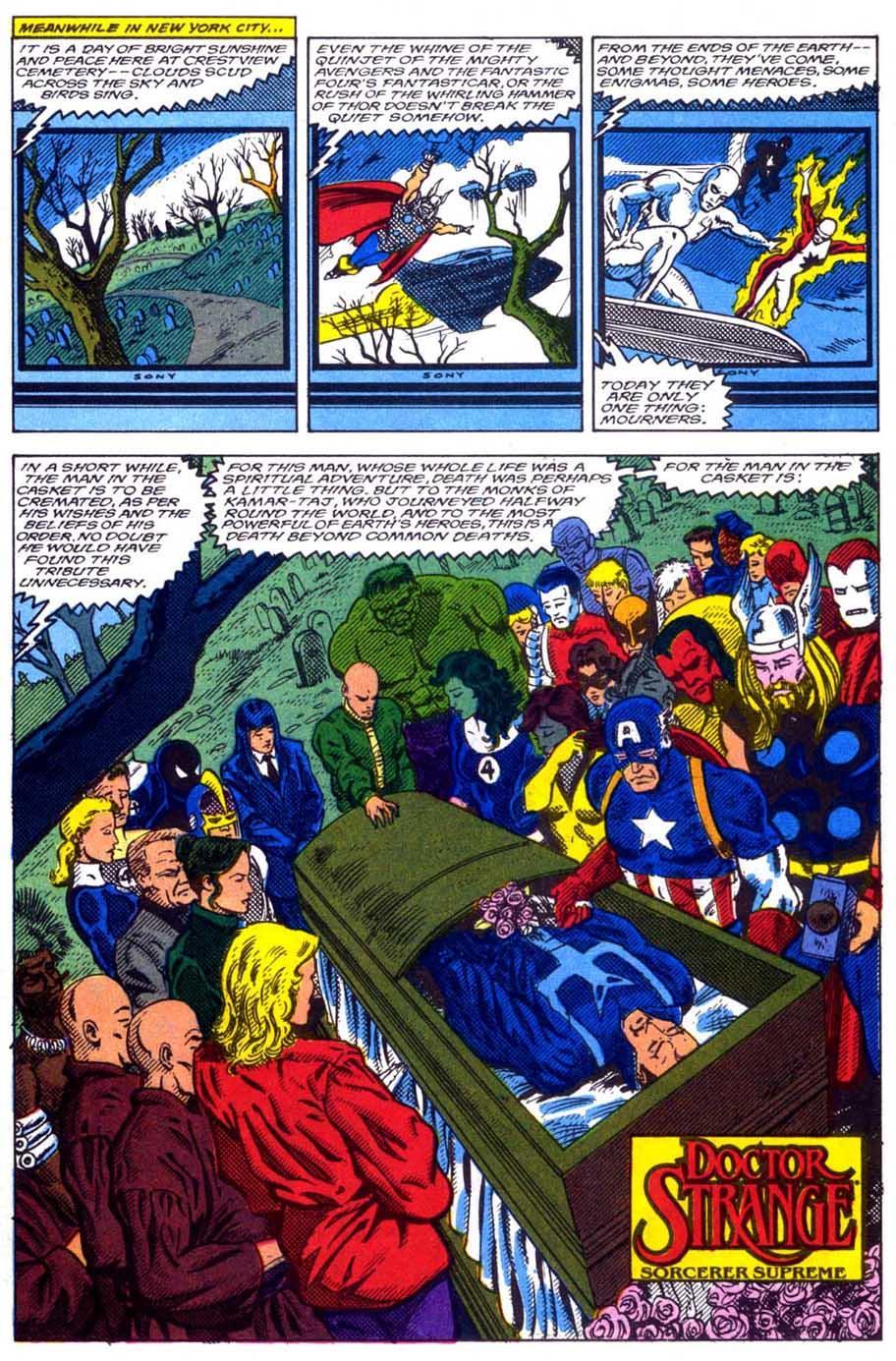 None of these heroes can help Strange as he cast a forgeticus spell in Strange Tales 2, so they think him dead.