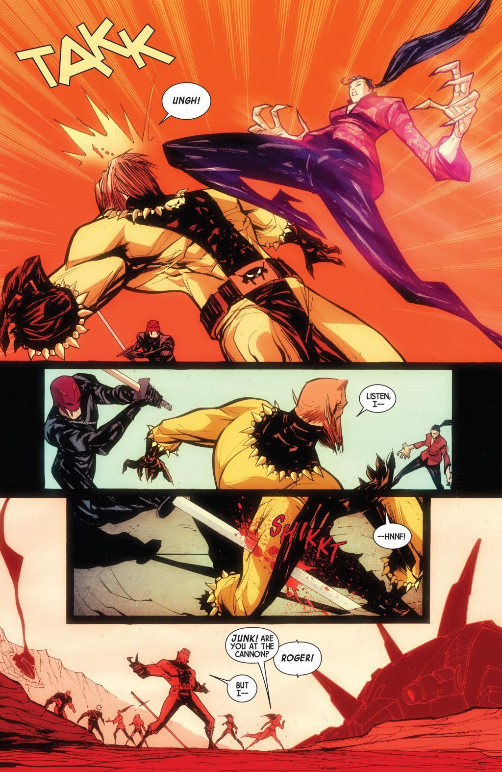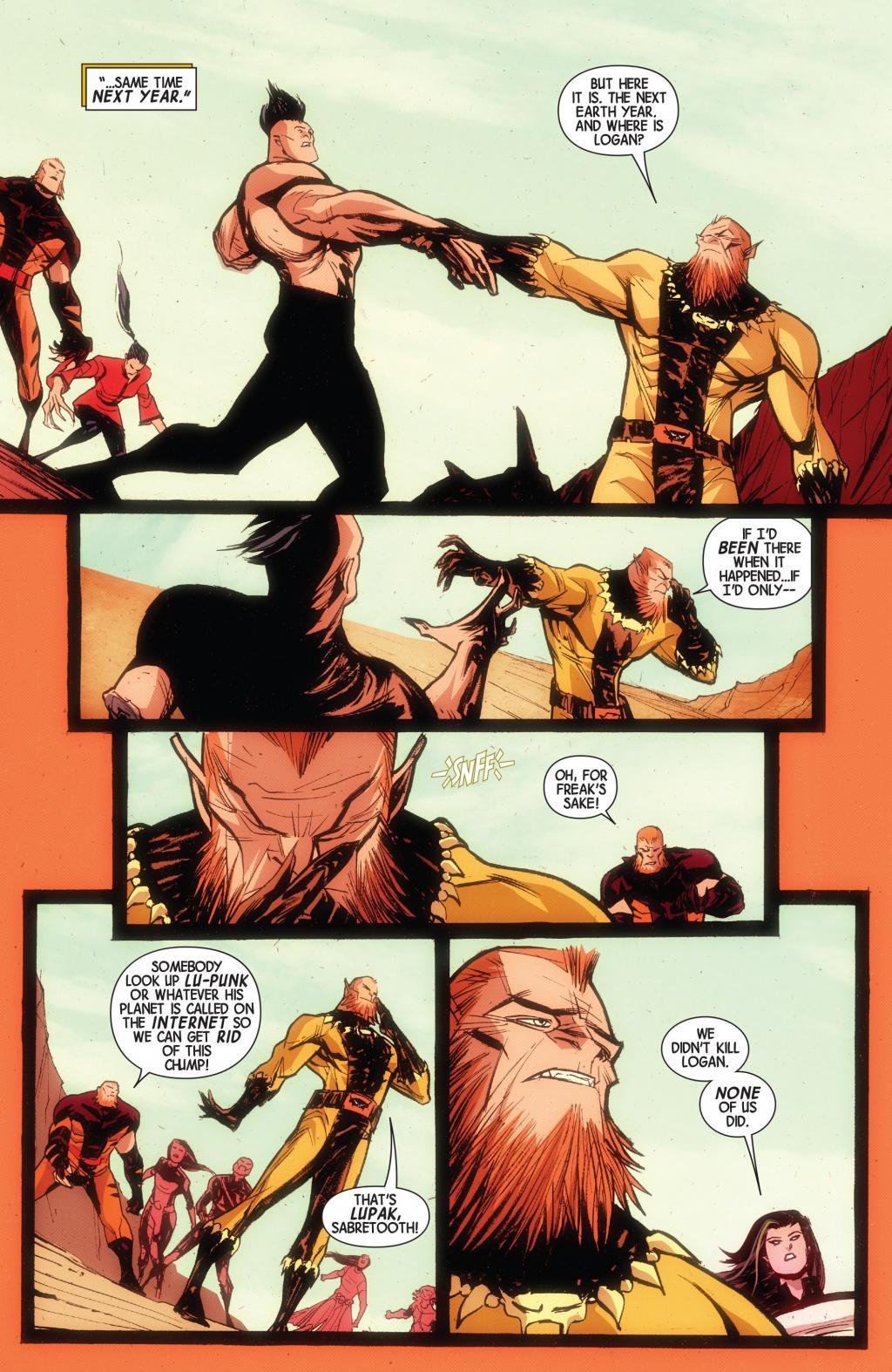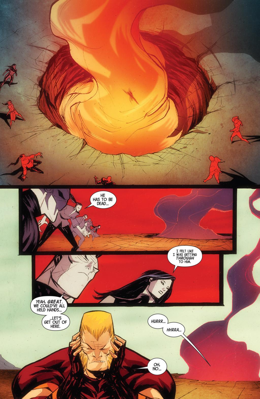 Back with the Wolverines, X23 is without her healing factor for the first time. She wonders when the pain stops, and Daken tells her that it doesn’t. Sabretooth wants to go after Siphon, and he teleports right in front of them. They know that Siphon has been drained again and by that, they know that Mystique must be near by. Daken wants to use Siphon as a bloodhound to track Mystique.