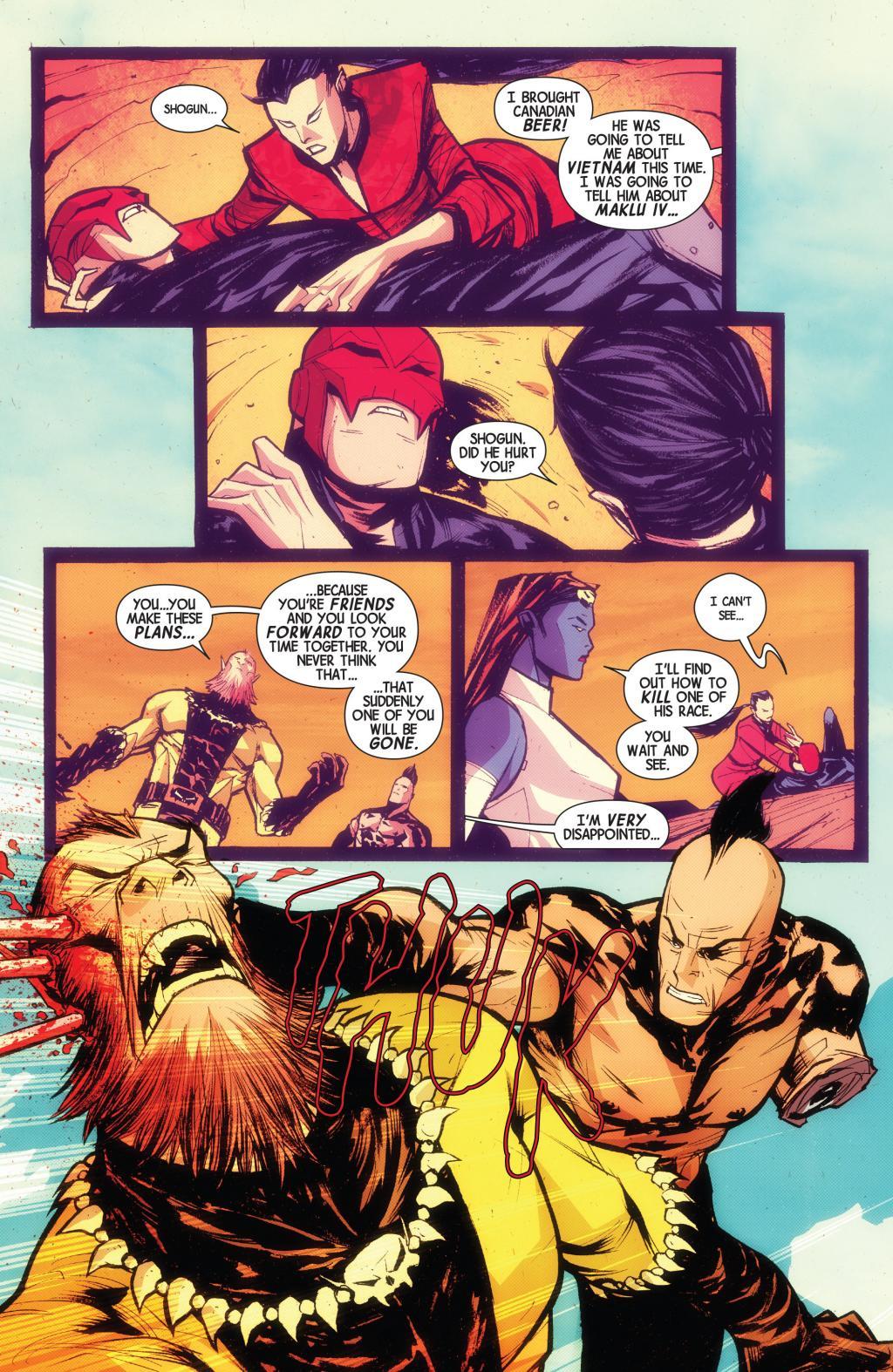 Lady Deathstrike jumps into the fight so that Shogun isn’t on his own. Shogun is taken down, pretty easily.