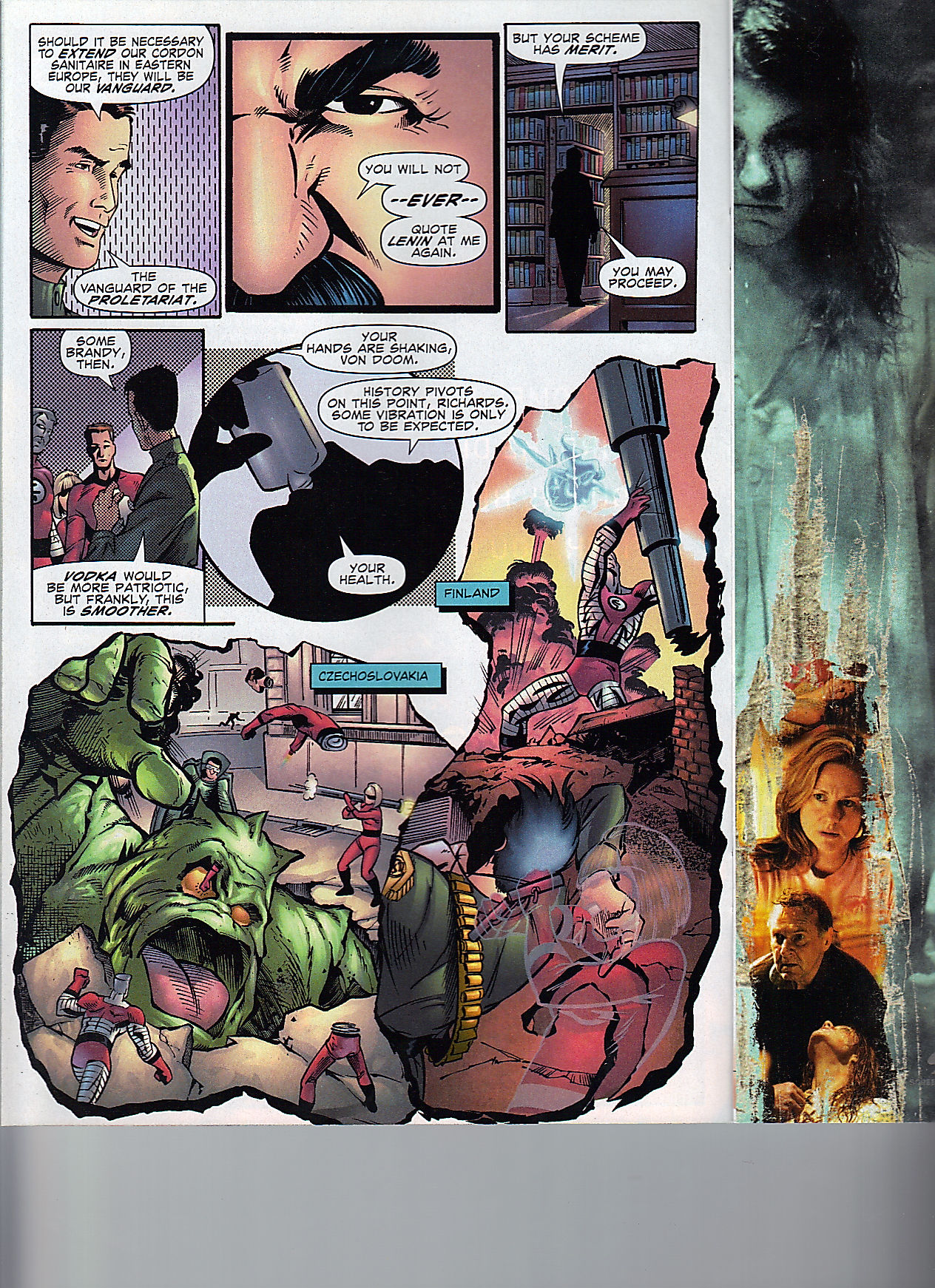 Thor sticks around and provides his own extended speech. That is followed up by Uatu the Watcher and the Silver Surfer, both seem to be having a good time. Also having a good time, is Daredevil.