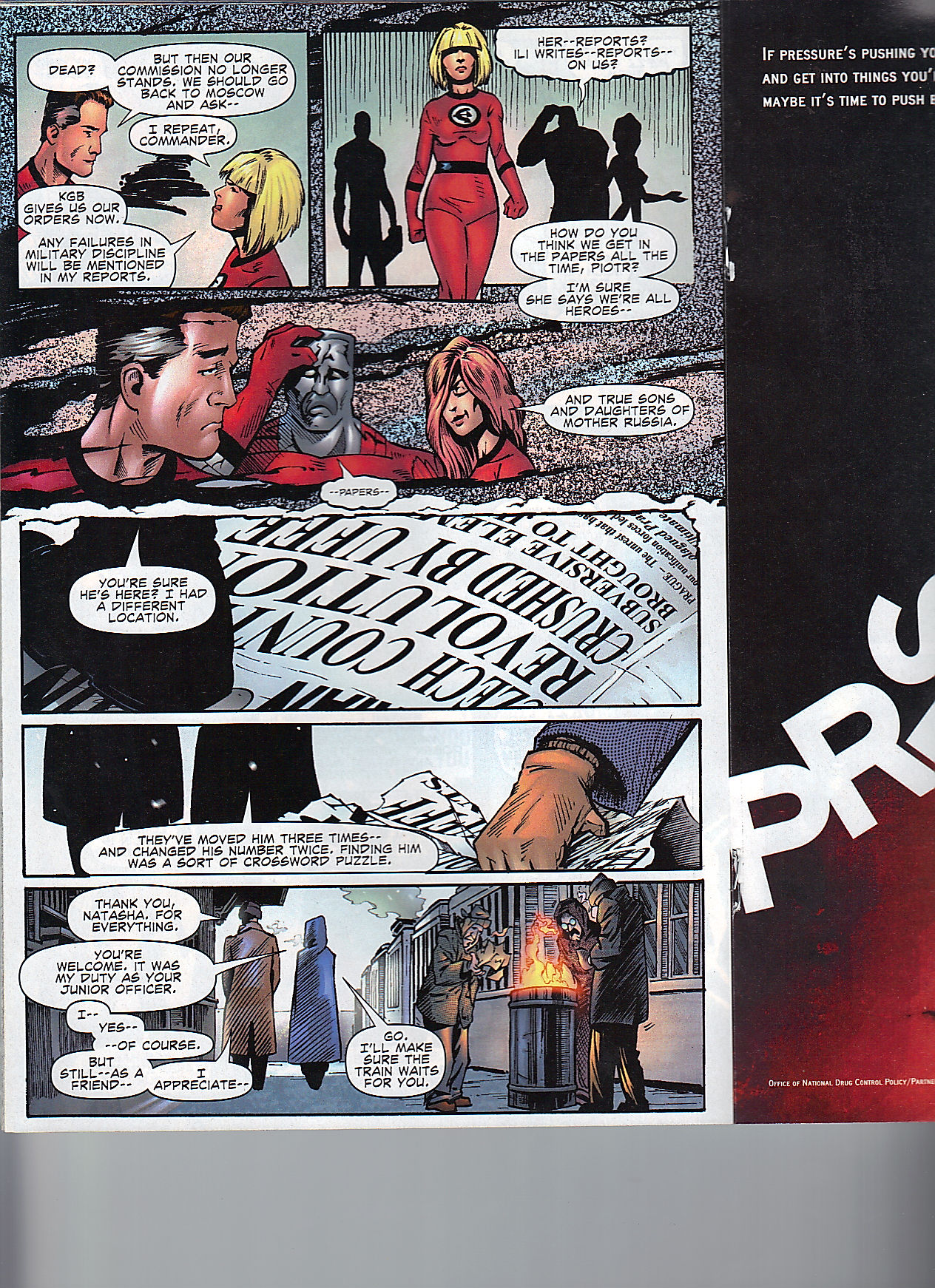 To make the situation worst, Wolverine threatens to stab Reed. Torch can’t take this and wants to know why the X-Men are being such jerks. Cyclops quickly comes up with Magneto is controlling their minds and they leave the stage. Torch remembers that isn’t Magneto’s power set.