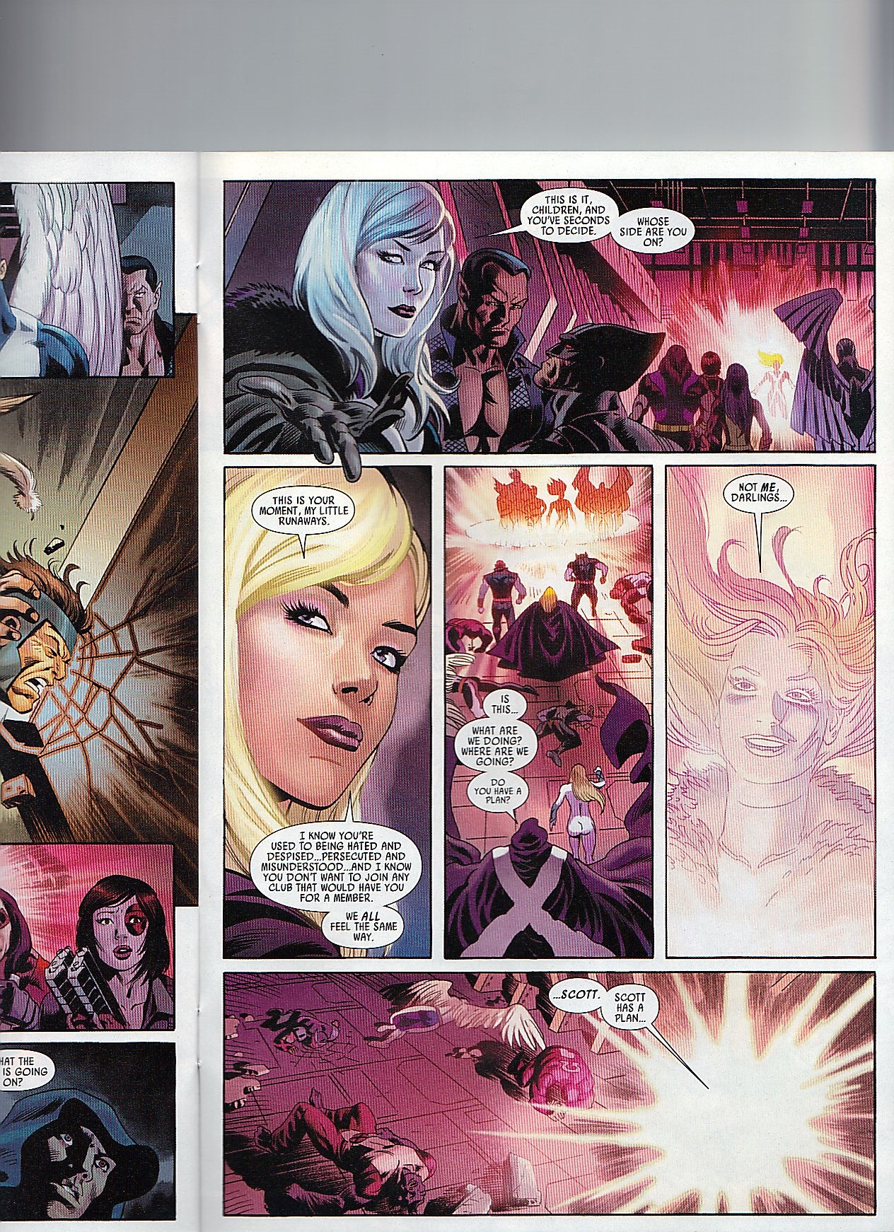 At Long Beach, the X-Men arrive. Cyclops tells Emma to hide them from the onlookers, which of course Emma has already done so. I so miss Cyclops and Emma as a couple, they really were the ideal fictional couple – two great characters, that once paired, both bring out different aspects of each other and both become better characters in their own right.