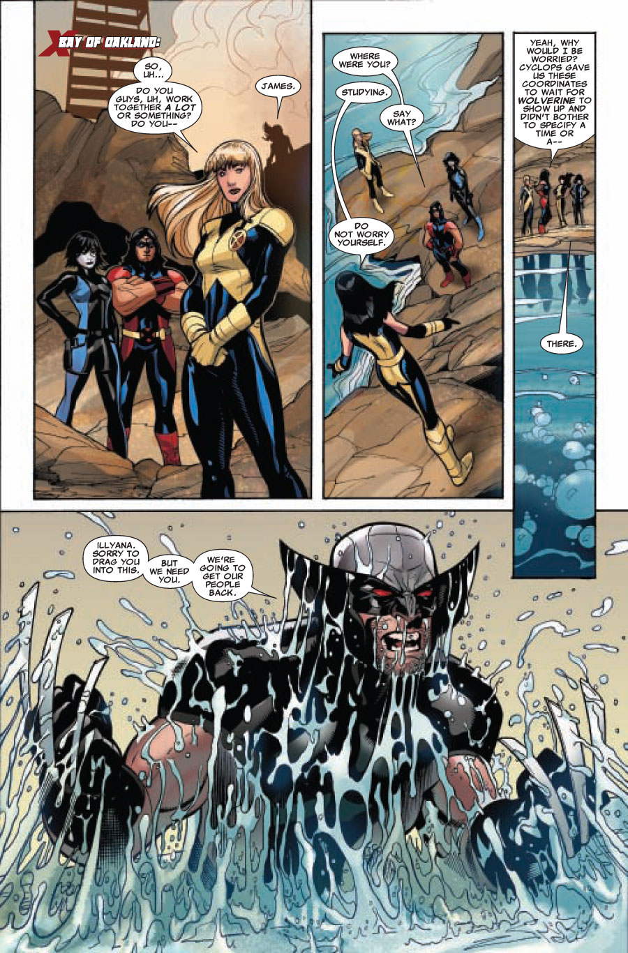 Rachel then telepathically tells Cyclops, that she has given Wolverine some false information. Which is nice, as Cyclops and Rachel, even by 2012, still haven’t had much interaction. I wouldn’t mind having seen the scene where those two actually talk – as that is an actual moment. Did she need much convincing, did he hesitate when asking her a favor – and to betray her side of the Schism?