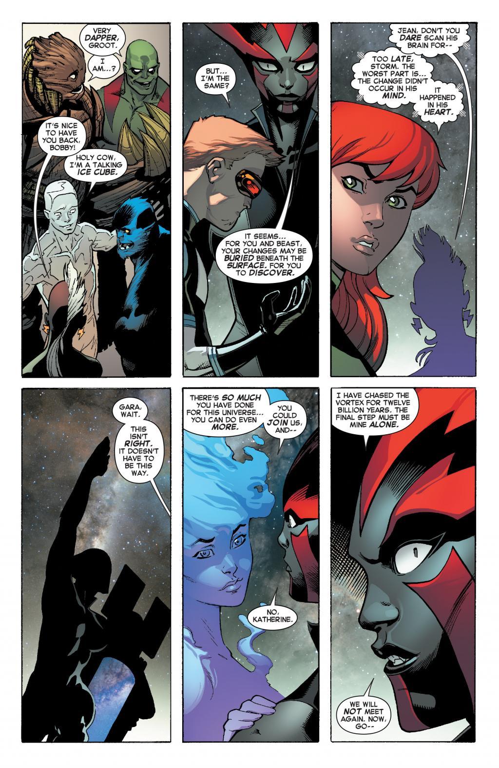 Gamora and Warren are going to keep their power upgrades. Scott, Bobby, Groot and Beast – all agree to risk the changes and get depowered. Beast reverts back to his latest blue ape form. Bobby, instead of having his default ice form being mostly snow, is now ice. Groot seems to be bulkier.