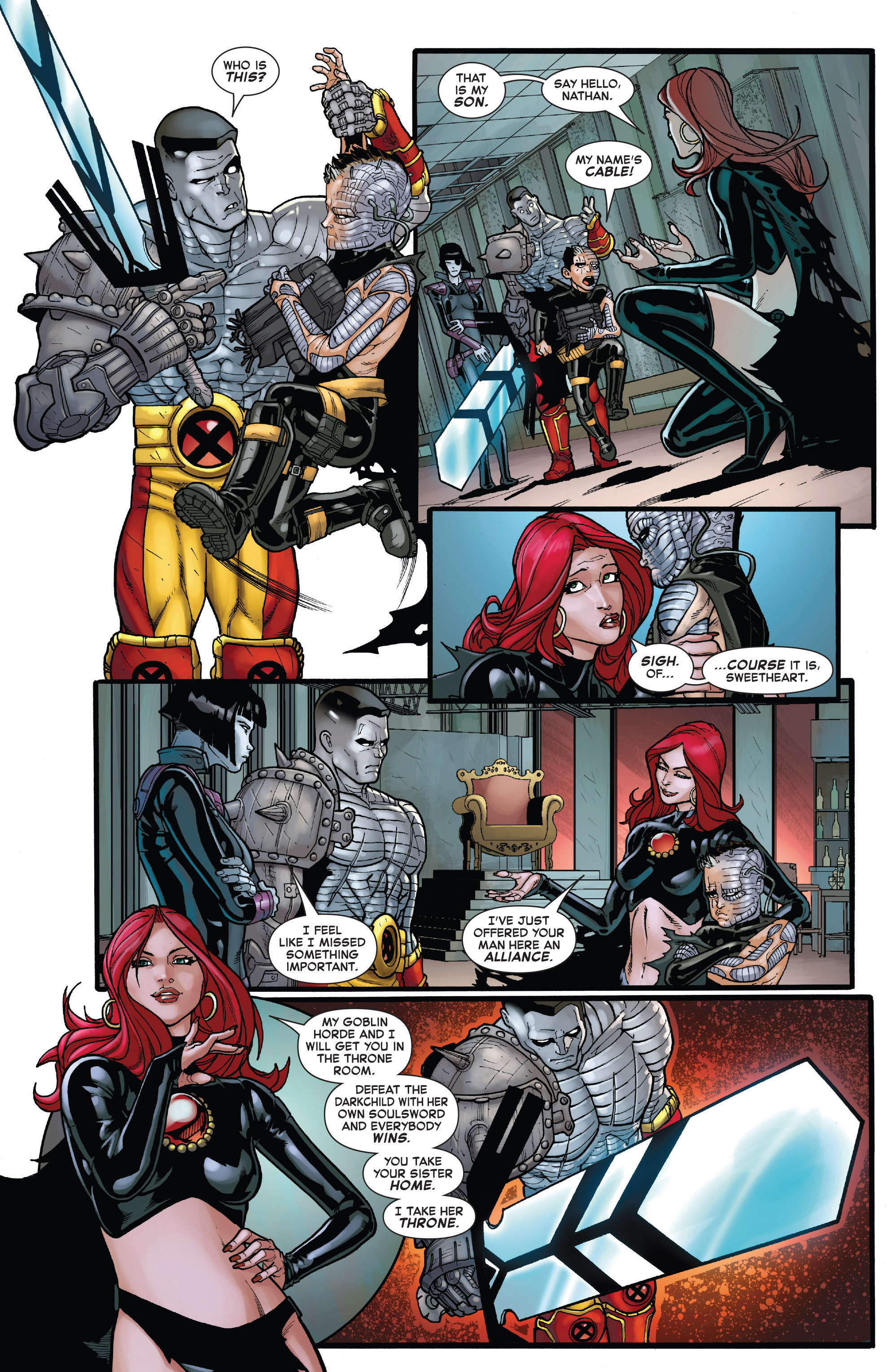 #Inferno V1 2#SecretWars 2015Darkchild is having a hard time breaking Kurt, so she rips out his soulA demon updates her that Colossus, Madelyne Pryor, Kid Cable, and Domino are coming for herDarkchild reveals she has own personal Nightcrawler, so she's not that worried