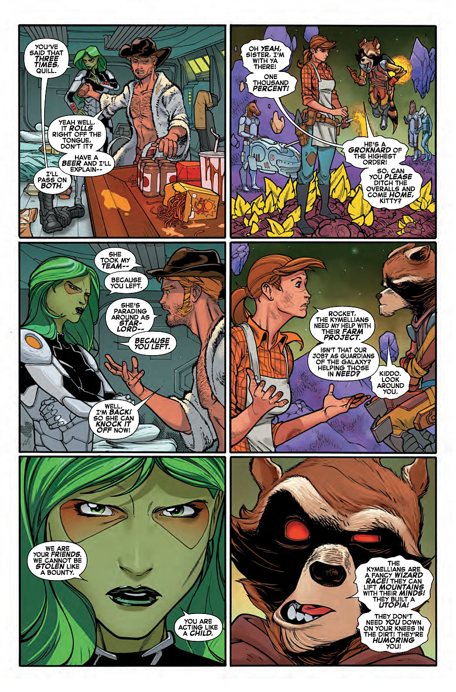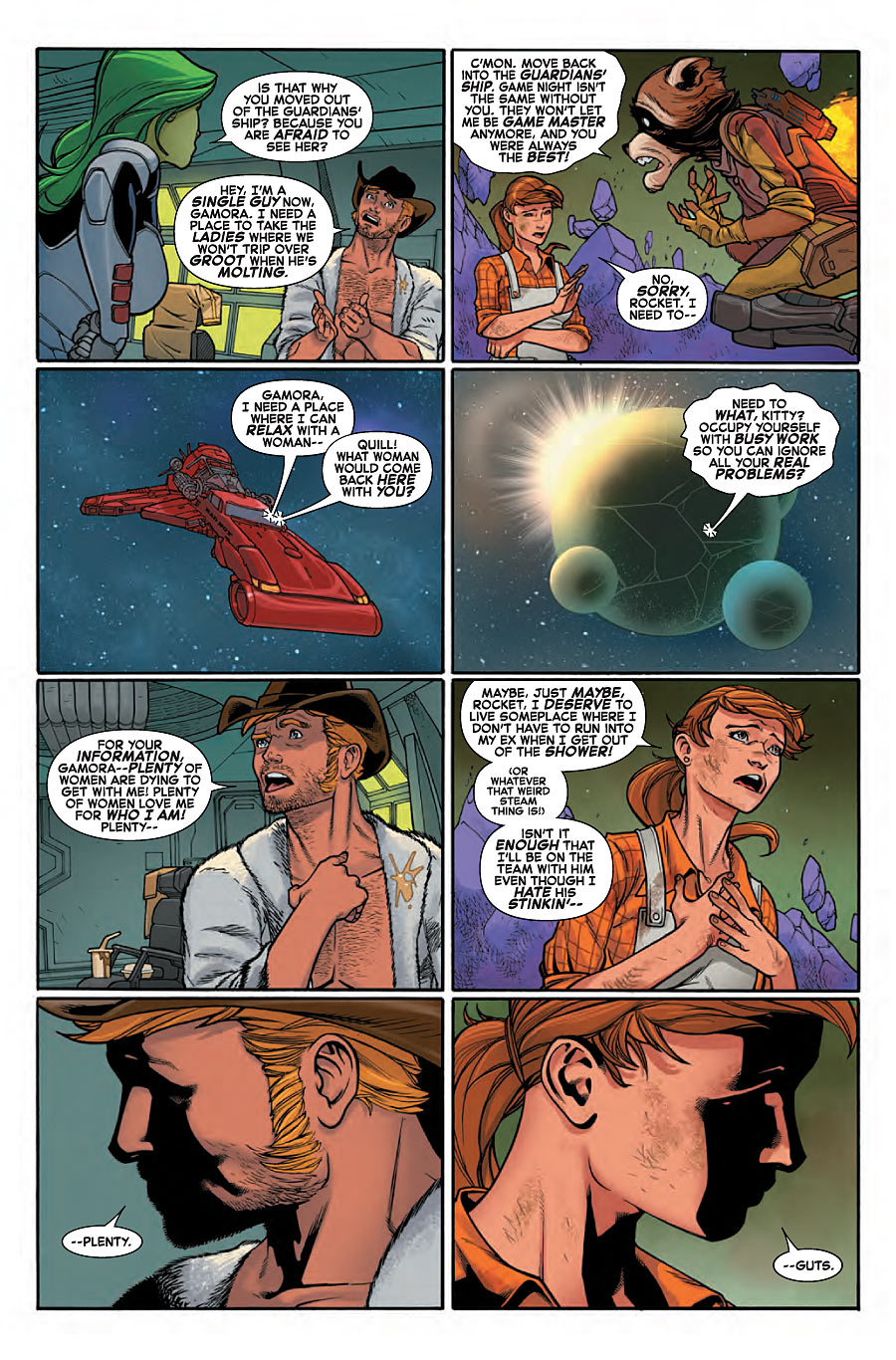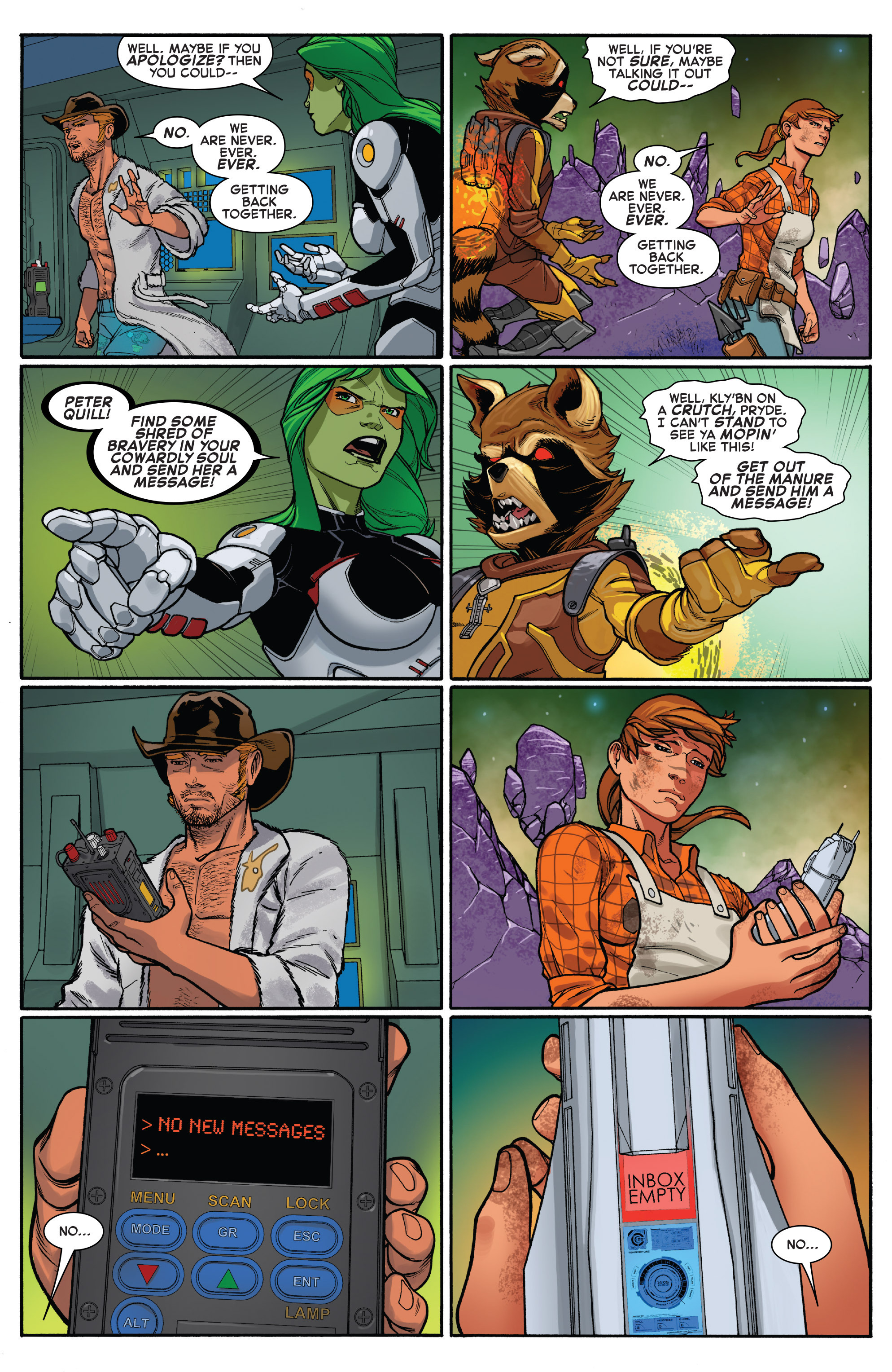 Issue opens with Rocket and Groot playing a table top game. Rocket is still upset that StarKat has broken up, as they were so happy.