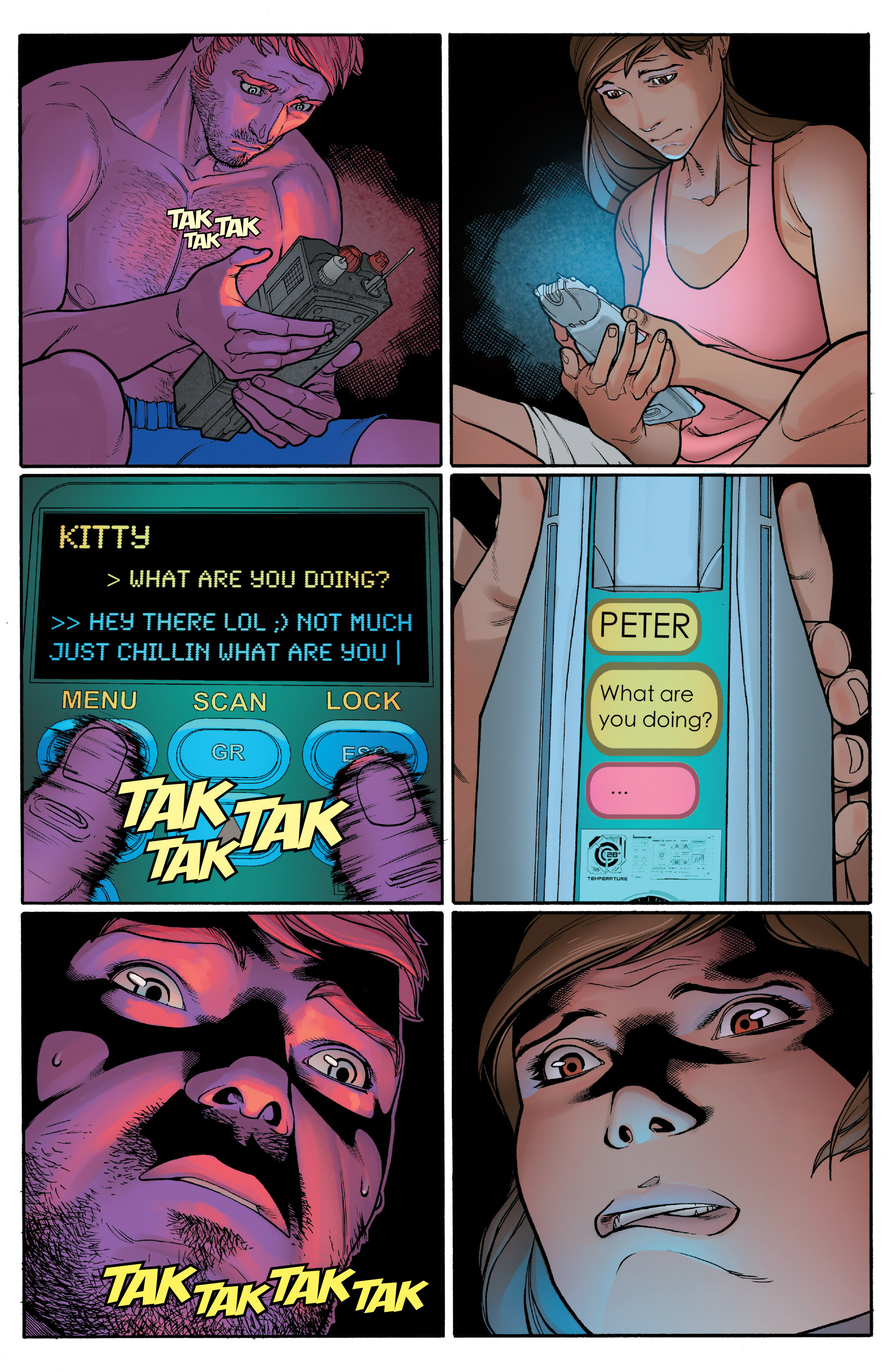 20 Minutes Later. Quill fakes that Pryde broke up with him as he cheated on her with all three – She-Hulk, Storm & Scarlet Witch. Kitty will hate both the player and the game. Which is a super fun line!