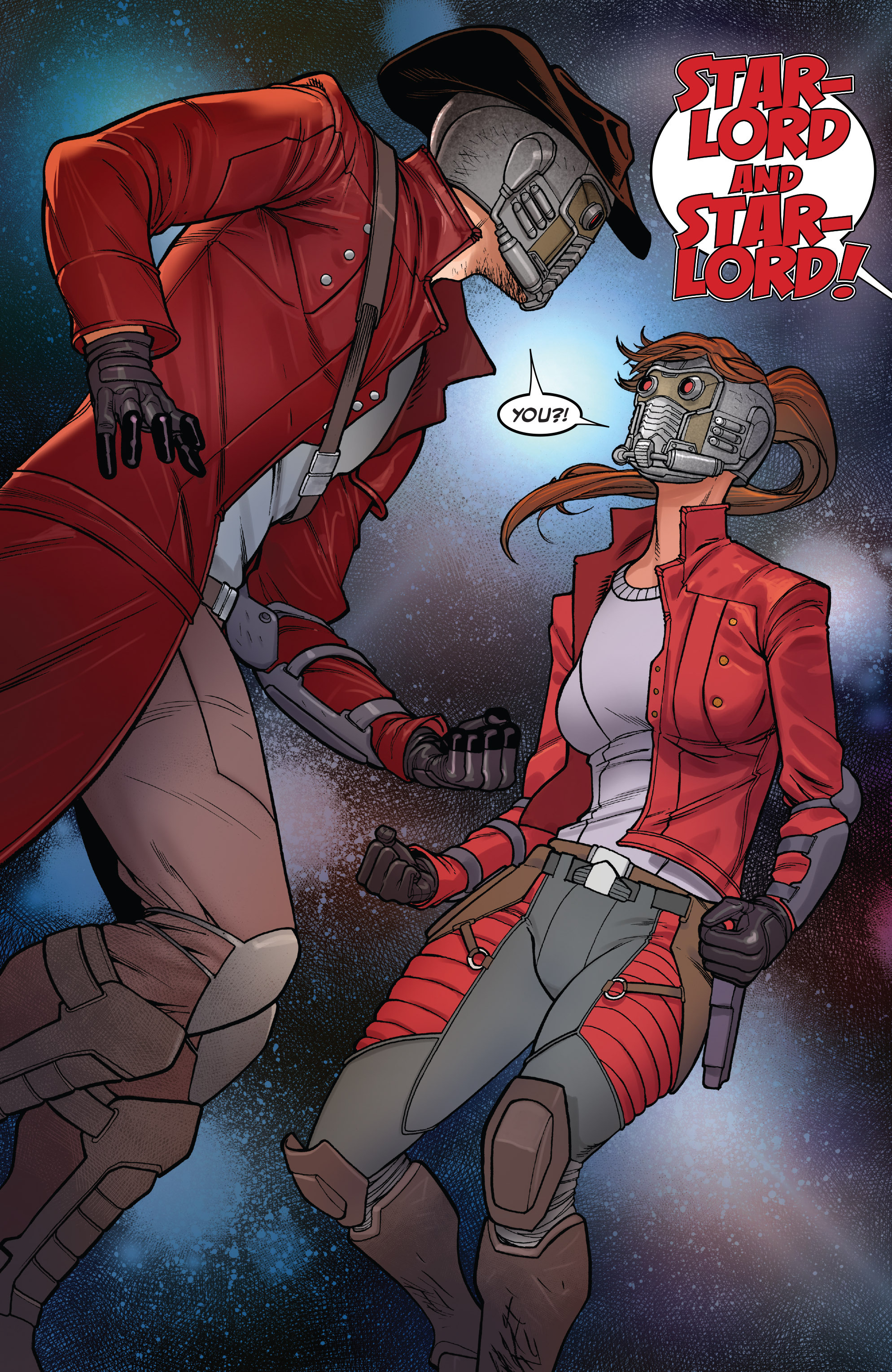 Both Star Lords enjoy punching the Quill outfits, they have to be Skrulls, right?