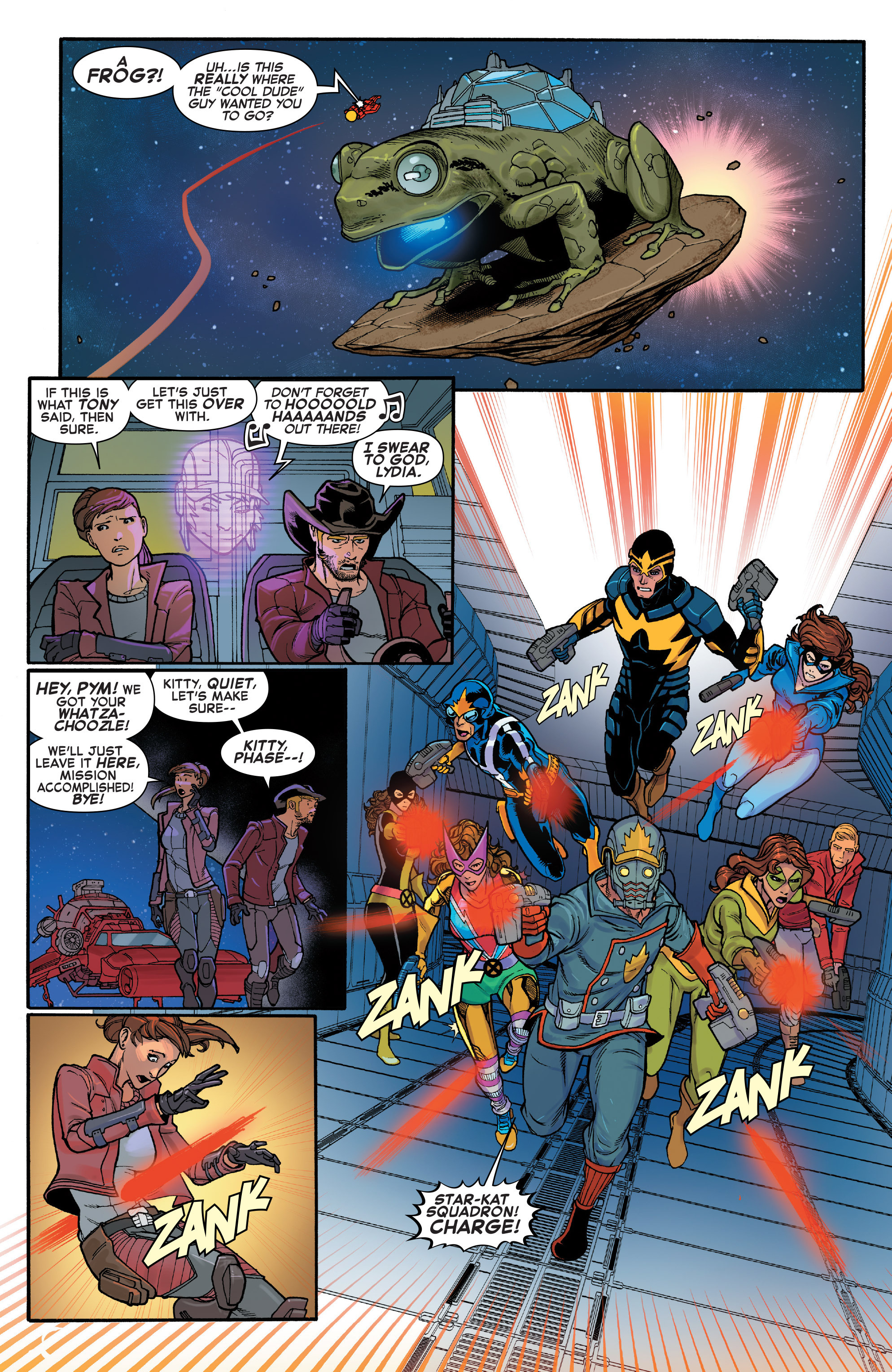 Issue opens with Pryde and Quill evoking Kitty’s classic “Xavier is a Jerk” phrase. We also begin a nine page sequence where we get both of these character’s point of view. It climaxes in an awfully fun way.