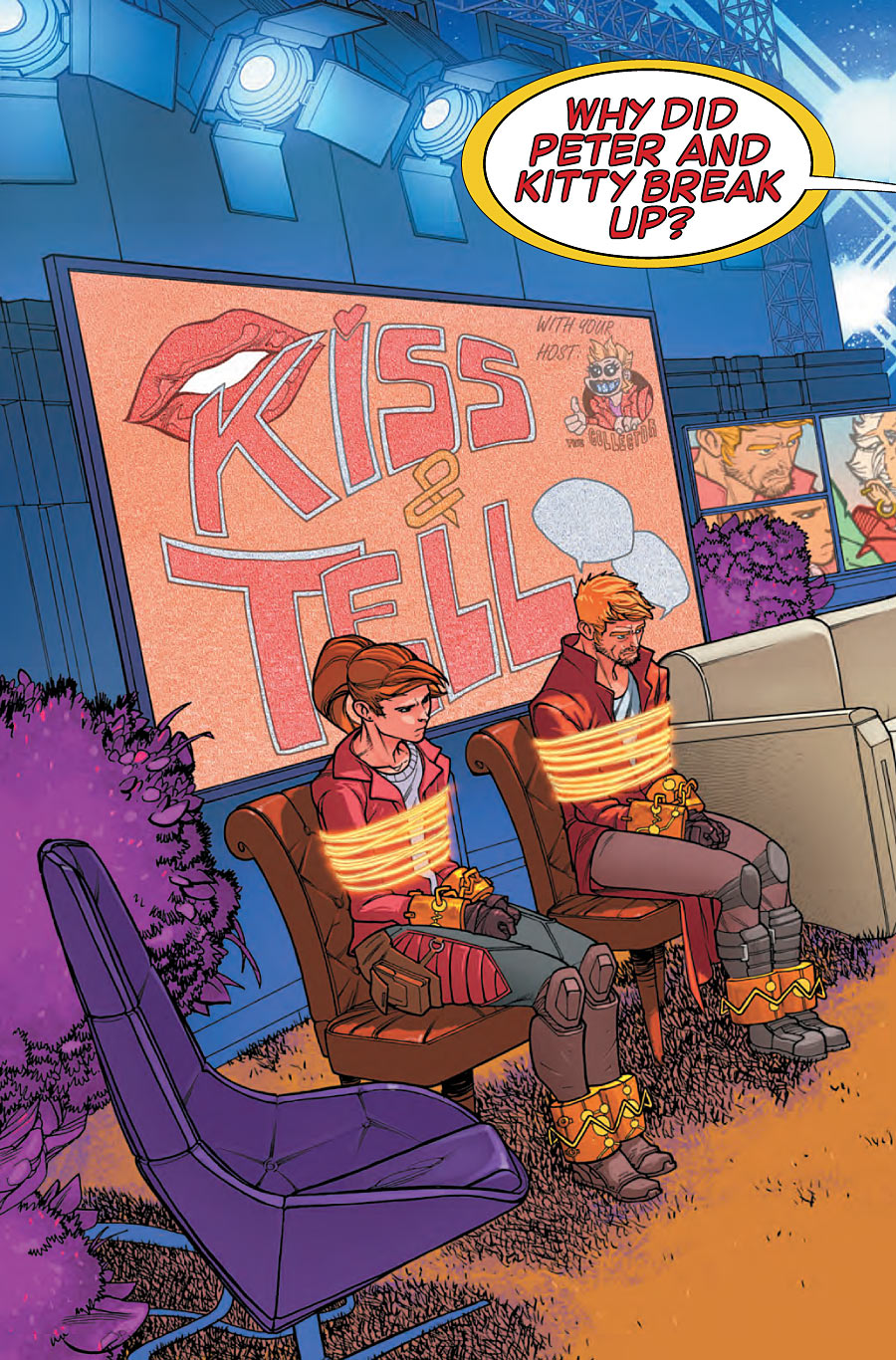 The Collector, who Howard the Duck recently took care of (and Kitty was part of that adventure, in a smaller role) is back hosting the galaxy’s hottest talk show – Kiss and Tell!