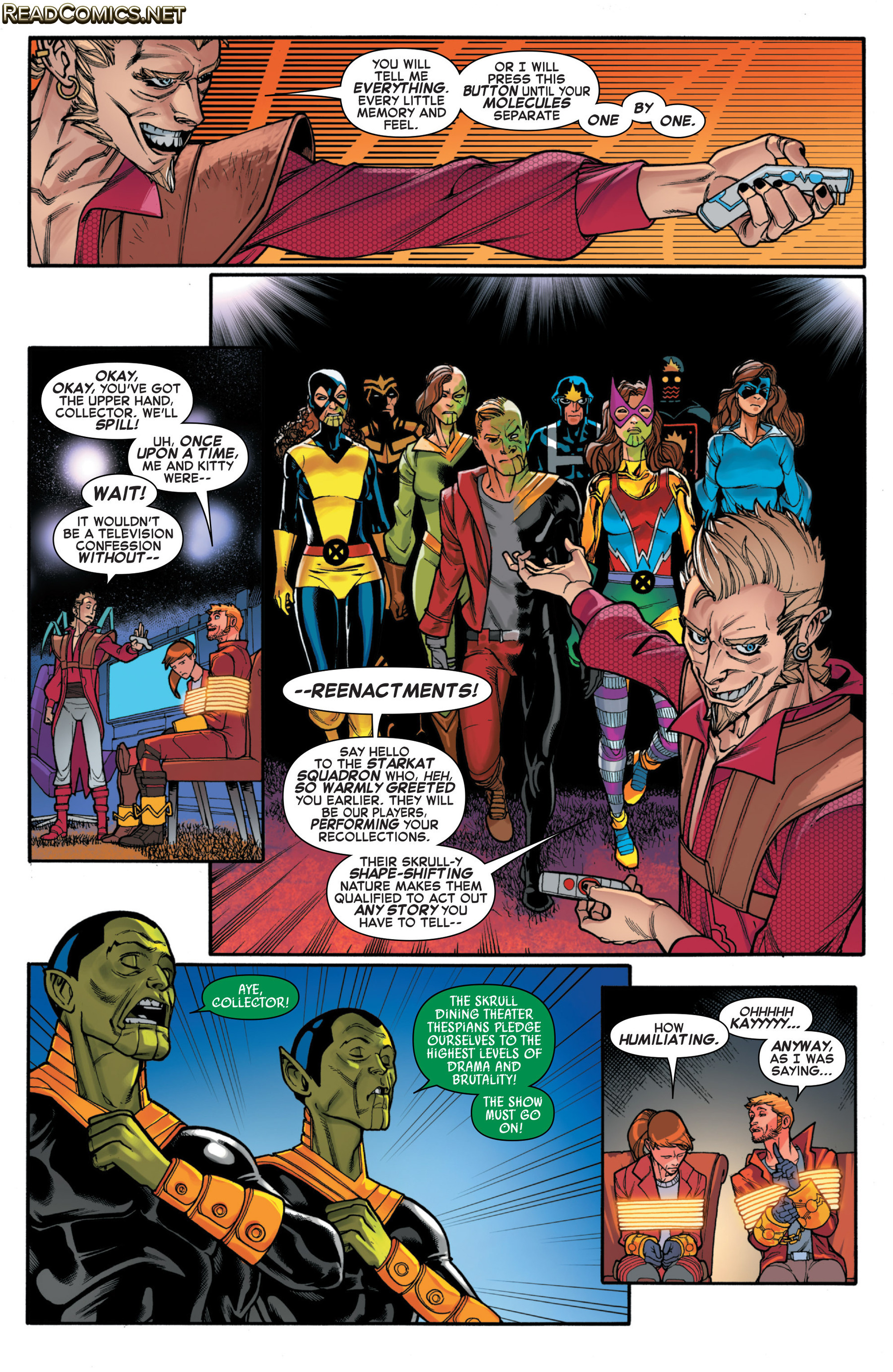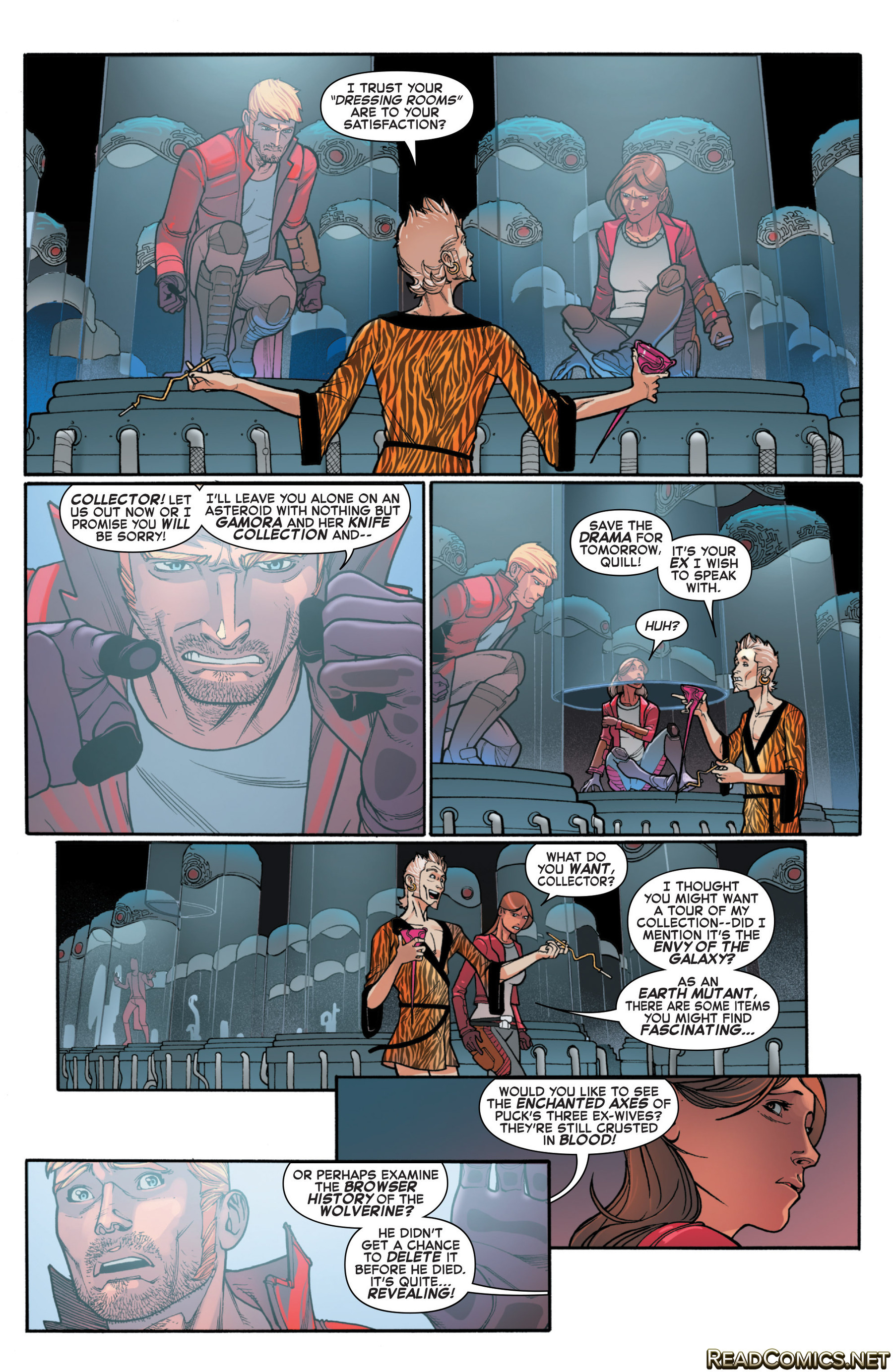 Quill tries to threaten Collector but he is only here to talk to Pryde. He wants to give her a tour of his collection. He wants to show her Puck’s ex-wives axes and Wolverine’s browser history – neither sounds all that interesting.