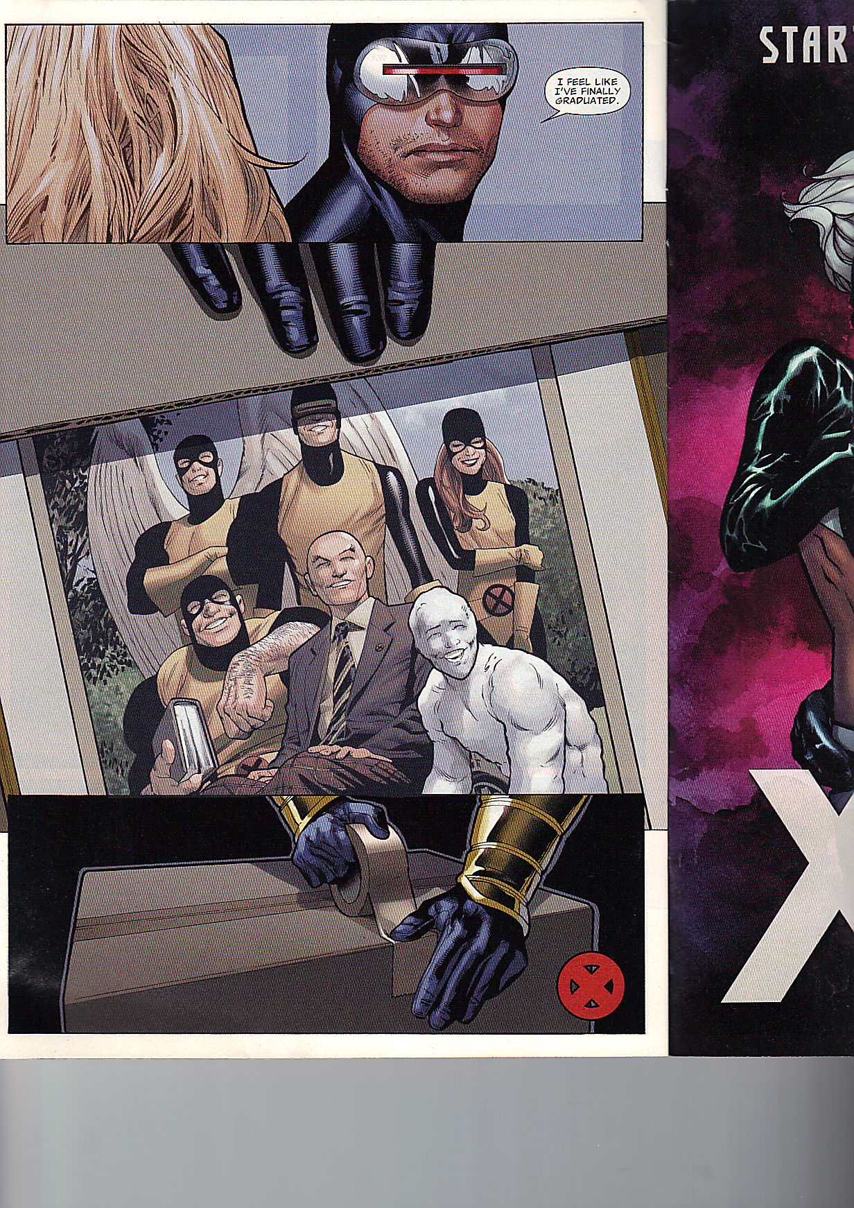 Cyclops finally gets around to talking to Emma. Emma is insulted that he just took for granted that she was going to join him. She loves teaching, she would be a perfect fit over at the new school. Cyclops tries to tell her that they teach at the island. Emma corrects him that they mostly train here.