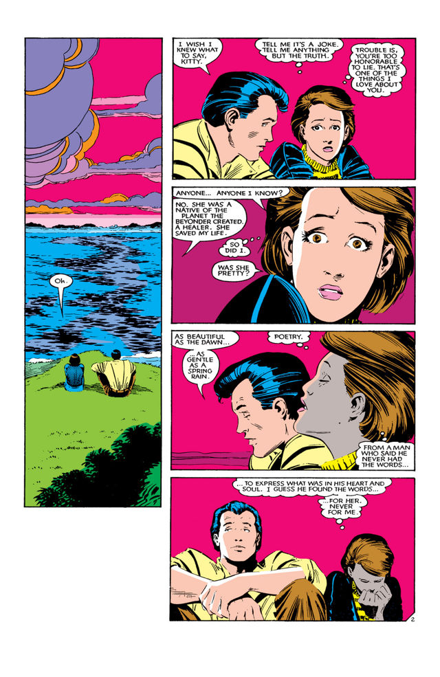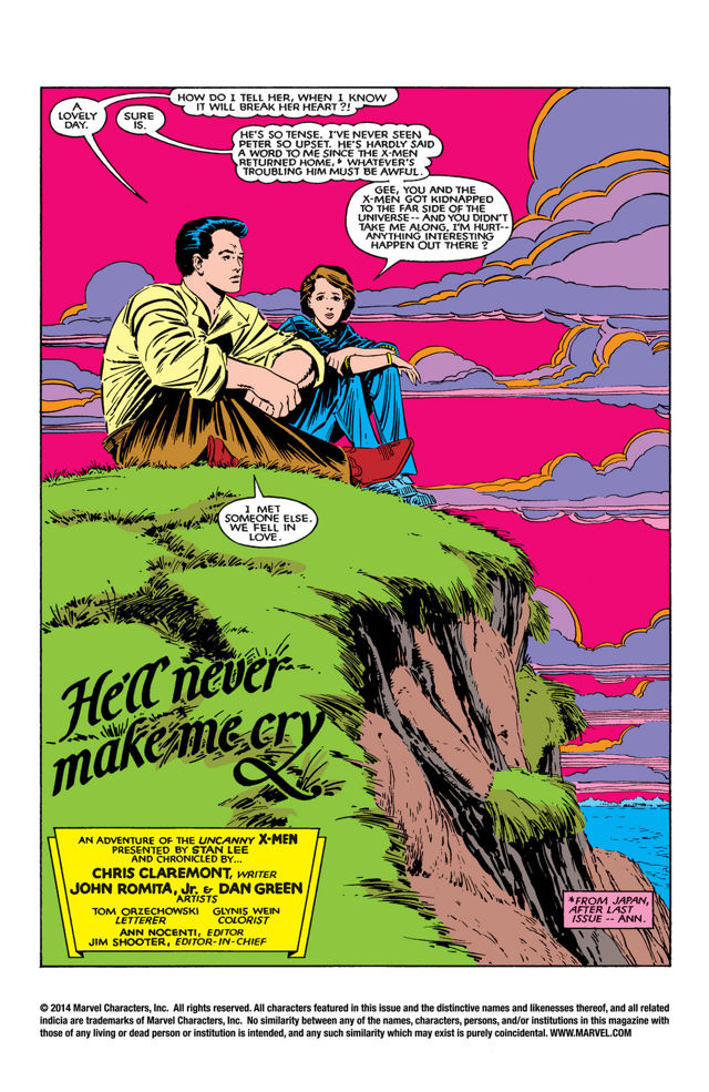 The X-Men and New Mutants return from Asgard. Ann Nocenti, the editor, has a very fun caption in the bottom right corner. Apparently X-Men Annual 9 and New Mutants Special 1 had to come out before this issue and it was quite the headache. Back when Marvel cared about delays.