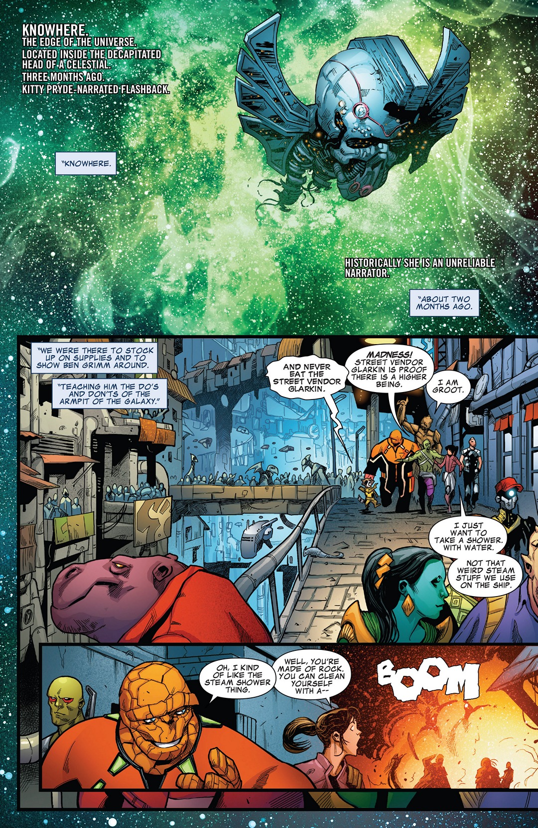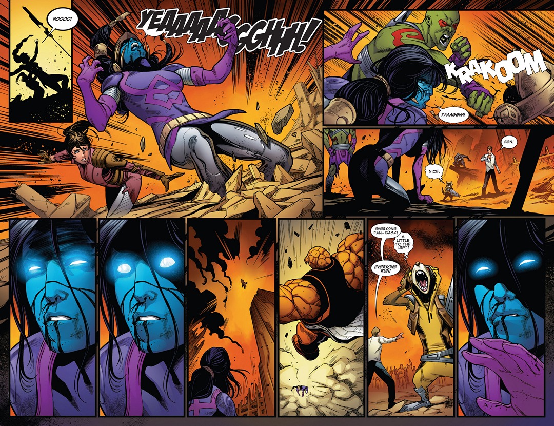 We finally get to the reason why I’m buying this issue and the next one. Kitty Pryde and the Guardians are getting closer to Howard’s location. Linda is with them. Kitty takes note of Galactus, but Grimm isn’t that concern. Rocket points out that others are also in pursuit of Howard.