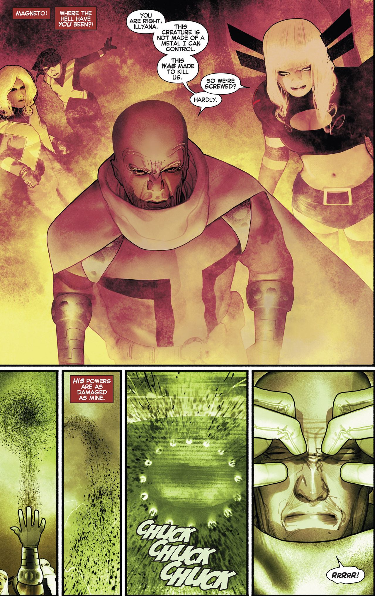 Kitty announces that Storm is summoning them, and Magik teleports them away. So when did Kitty change outfits? This will happen, one more time.