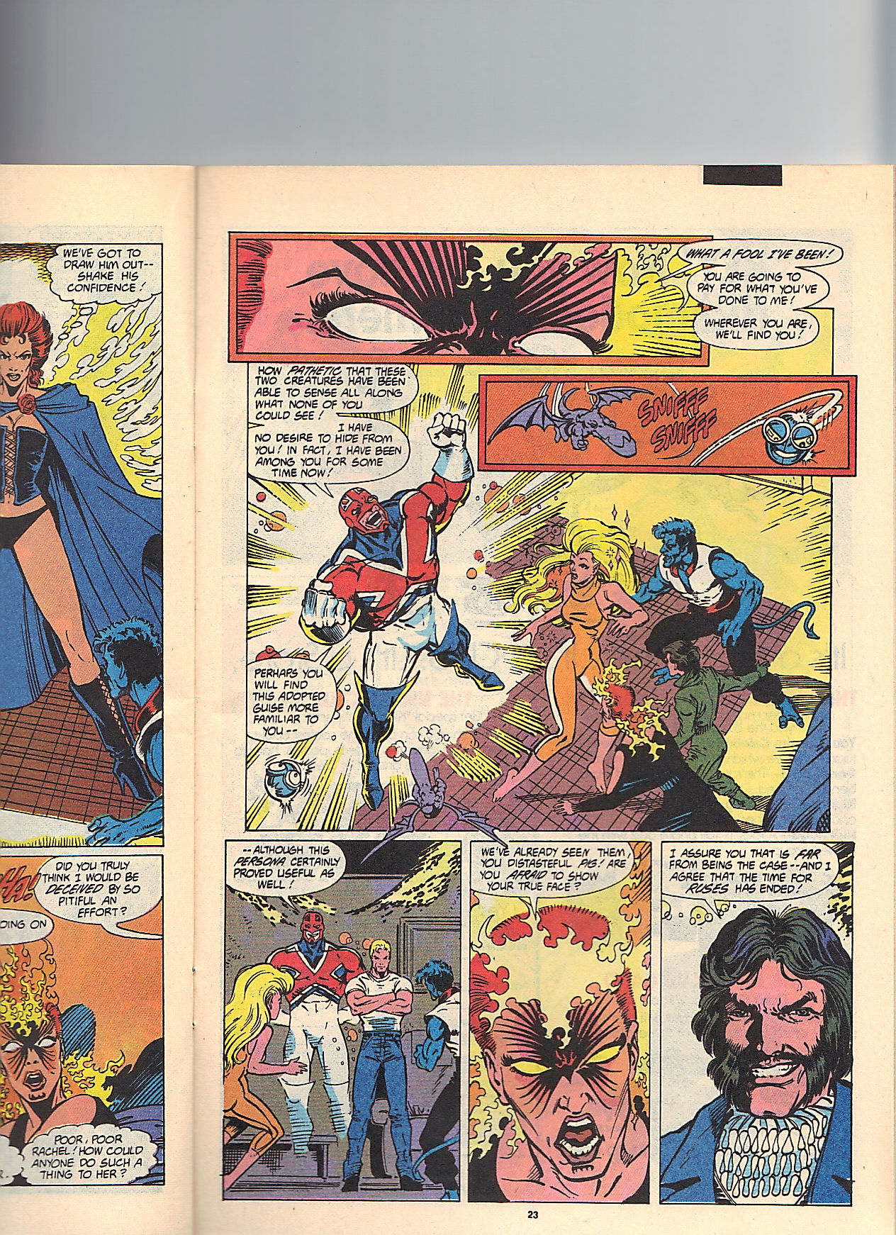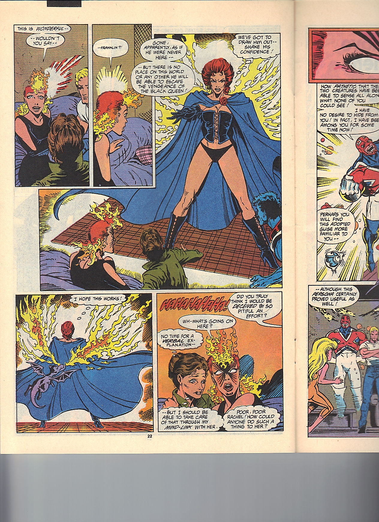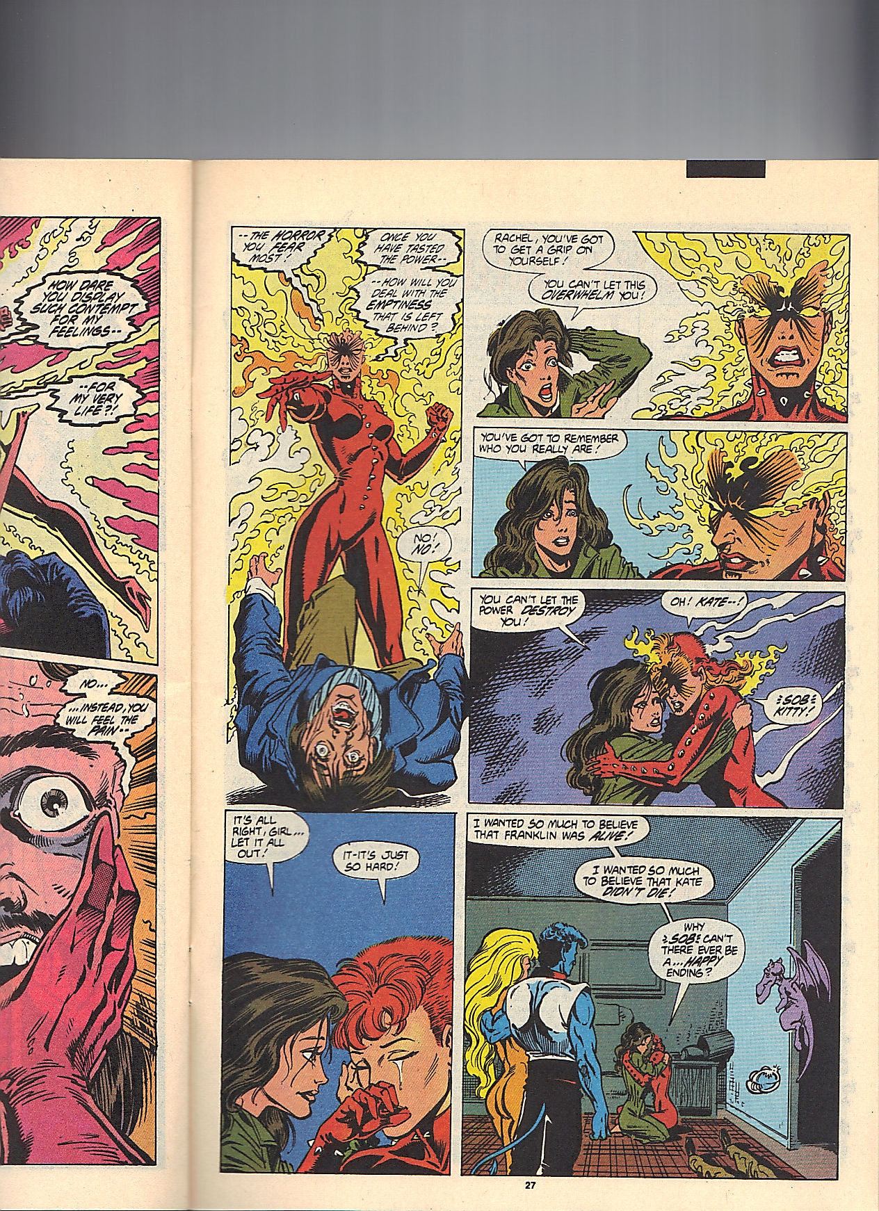 Madelyn Pryor and Rachel start fighting over the Phoenix Force, as neither has a full connection to it. Demon Wolverine tries to murder Strange, from behind! Kitty tackles her old mentor.