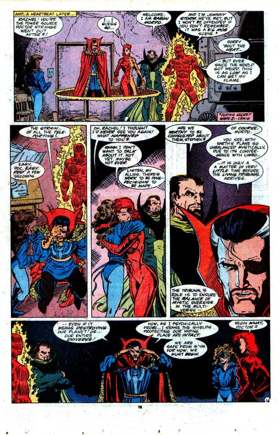 An hour later. Strange detects a great power and leaves, while not telling Mordo which causes resentment in the lesser magician. The power source is Rachel, still in that wedding dress and still smiling.