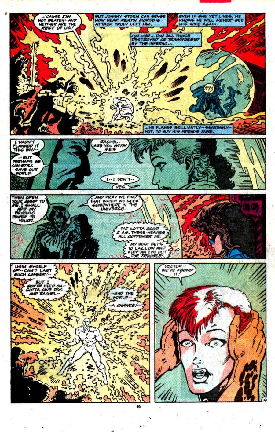 Rachel gets the Phoenix Force’s attention. S’ym is able to strike at Strange, so Strange goes off to fight S’ym.