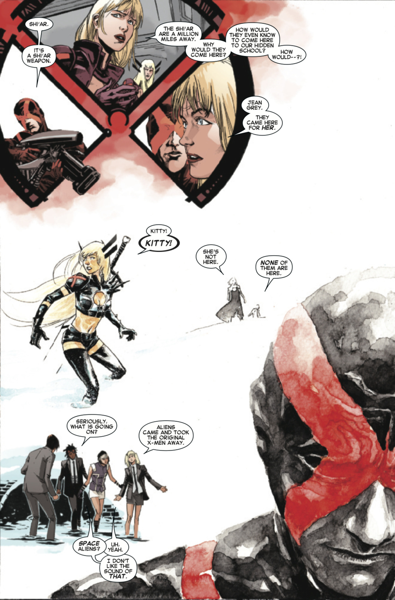 The rest of the comic is pretty good too. I imagine the final issue will end with Kitty and the All New X-Men welcoming Scott back to Earth.