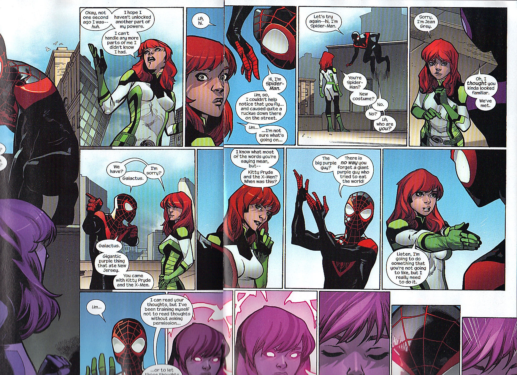 Gladiator tries to safe face and Jean starts up a speech about how they are creating All New history. Nice way to work the X-Men title into actual dialogue.