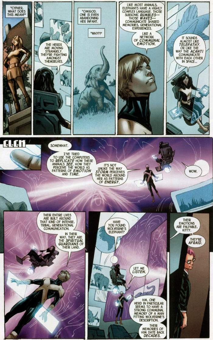The heroes catch their breath. Frenzy is sad over Chamber’s death. They were close during Age of X, which she was one of the few to keep those memories. That story turned out to be a Legion story. Nice touch, as that was a Mike Carey story so Spurrier didn’t have to reference that story.