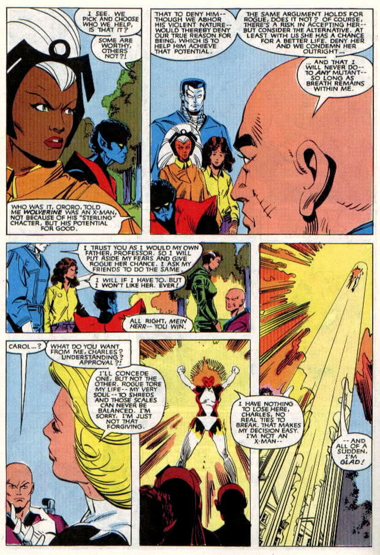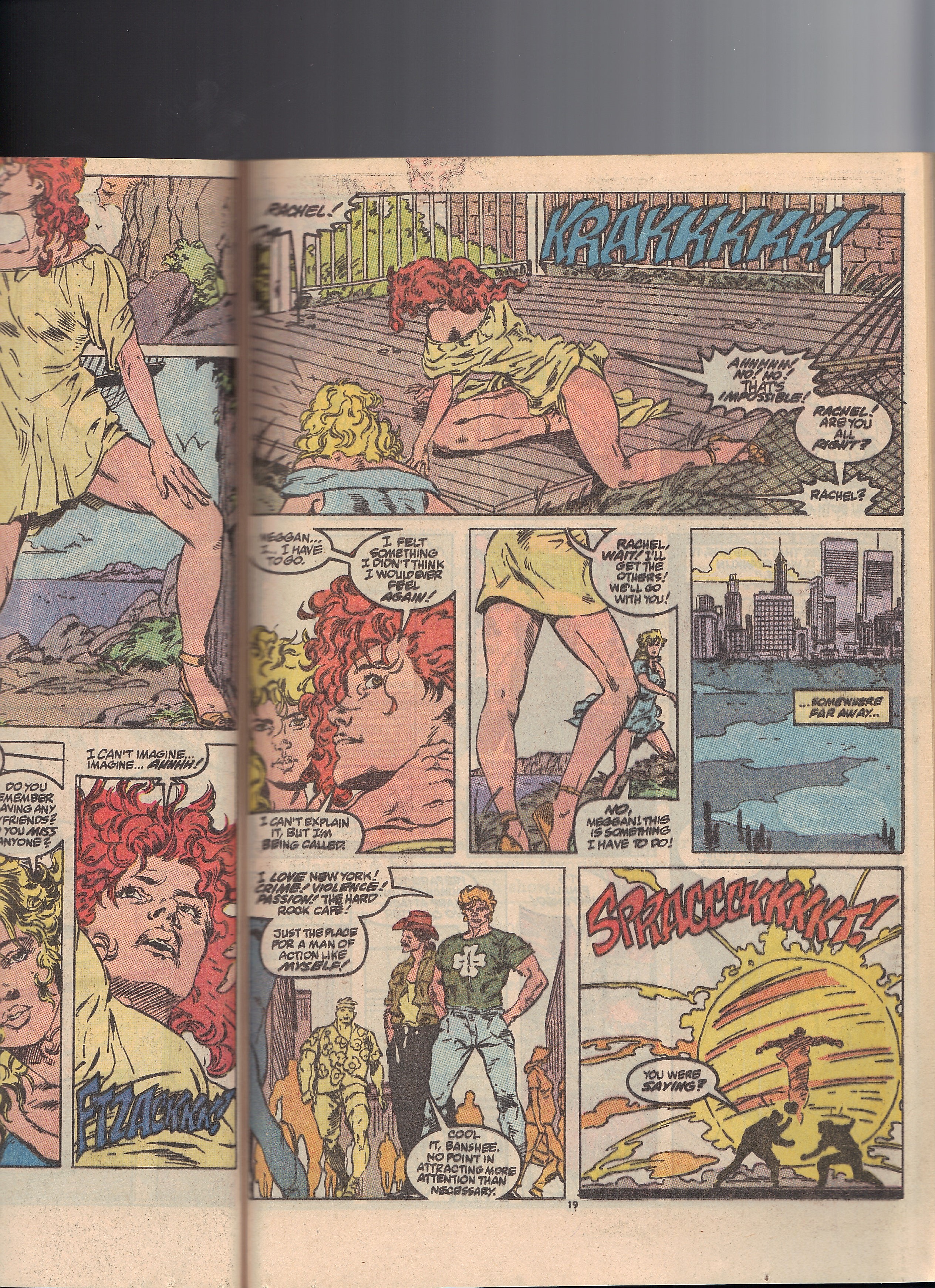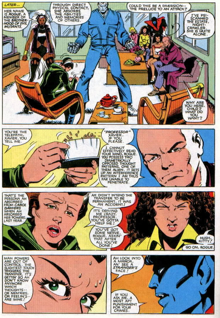 I wonder why of all the members of Excalibur, why Meggan was chosen to be the friend in this scene. The two of them do have a friendly connection. Was it that Guice wanted to draw the ‘hot’ ladies? I know later in Excalibur, the two of them have adventures together, one I recall is when Rachel went with Meggan as Meggan investigates her origins.