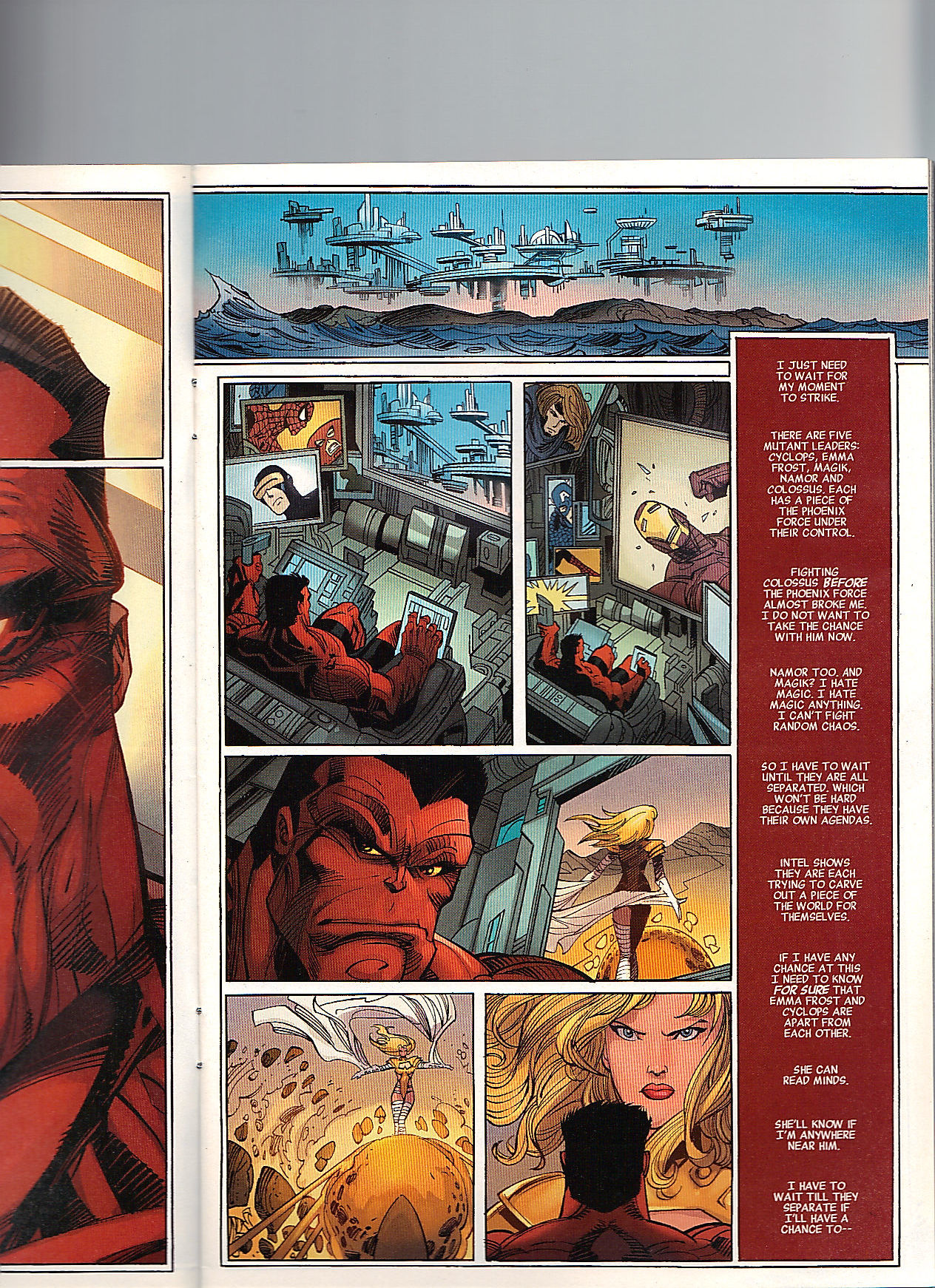 Banshee and Forge race over to Four Freedoms Plaza and notice the forcefield surrounding the building.